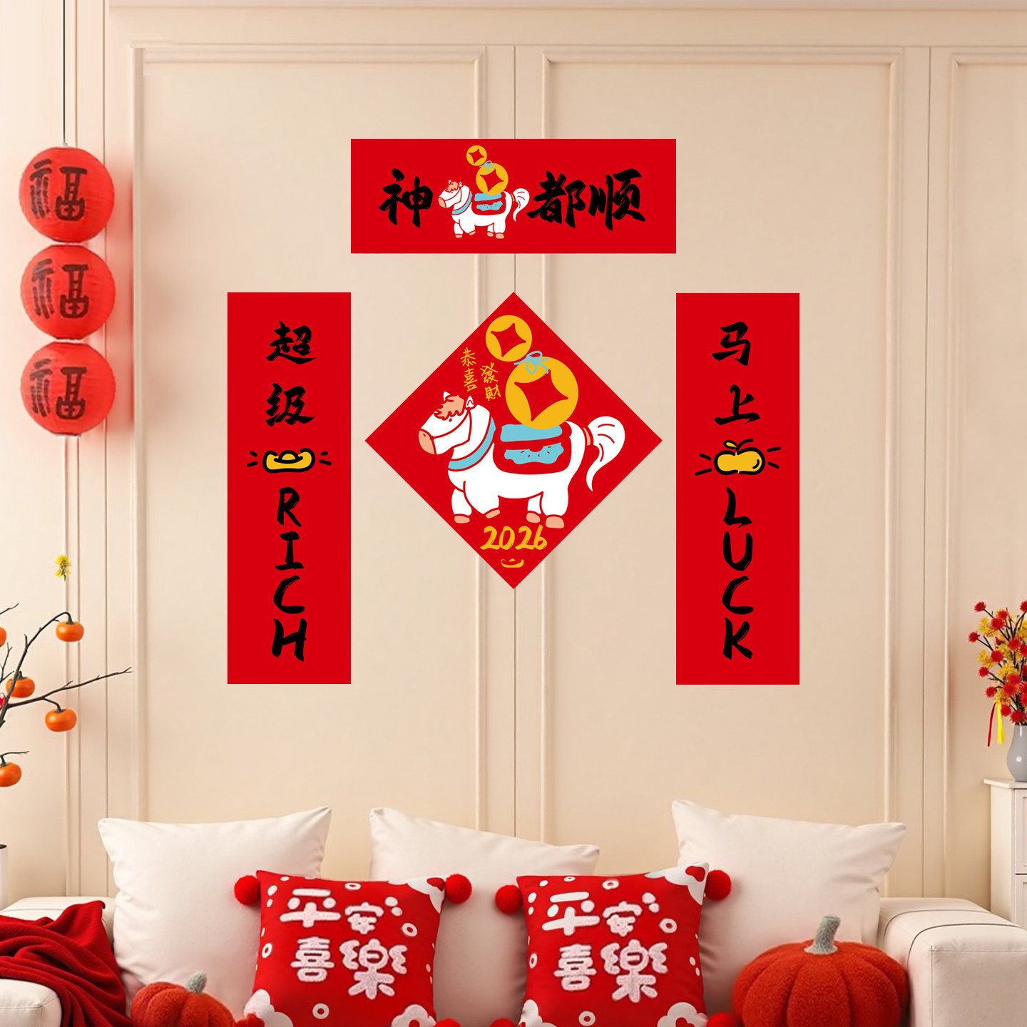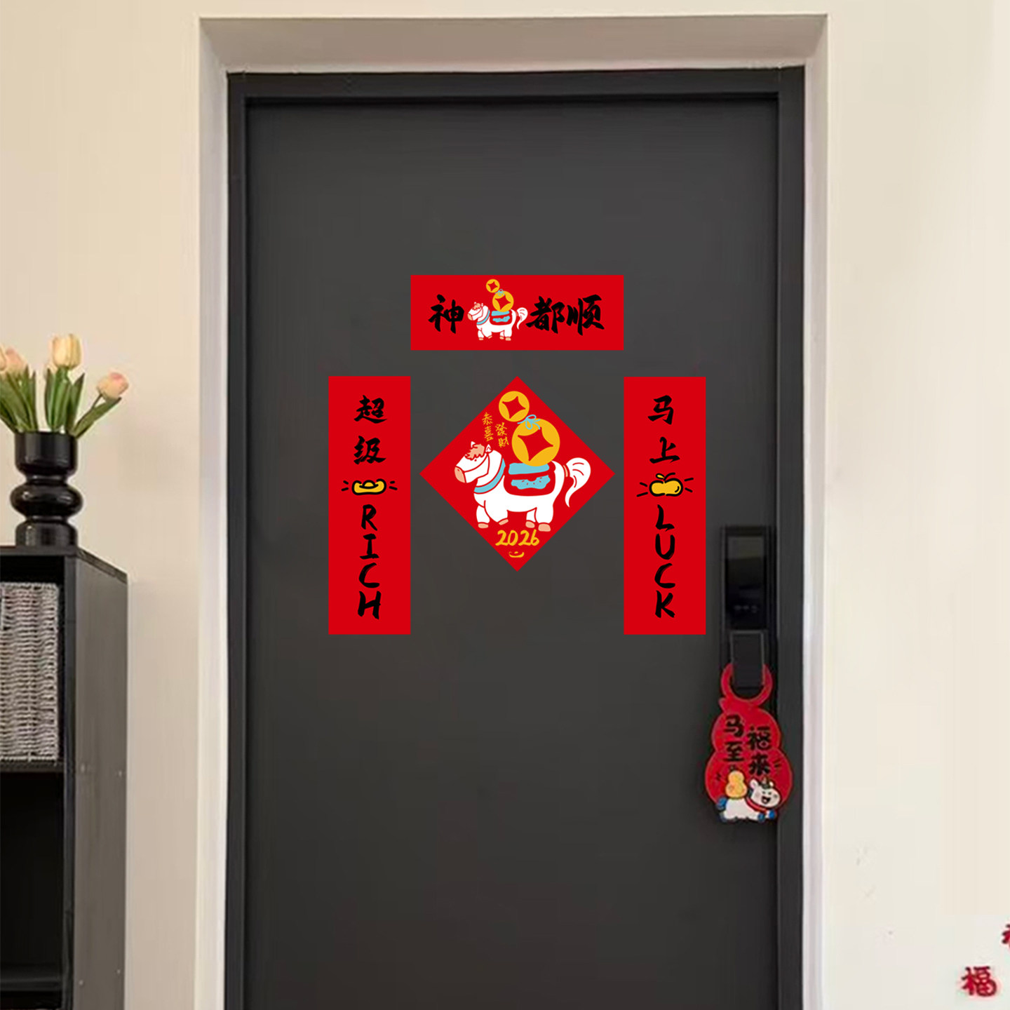 对联2026年马年新款新年门贴磁吸春联装饰创意春节搞笑入户门对联