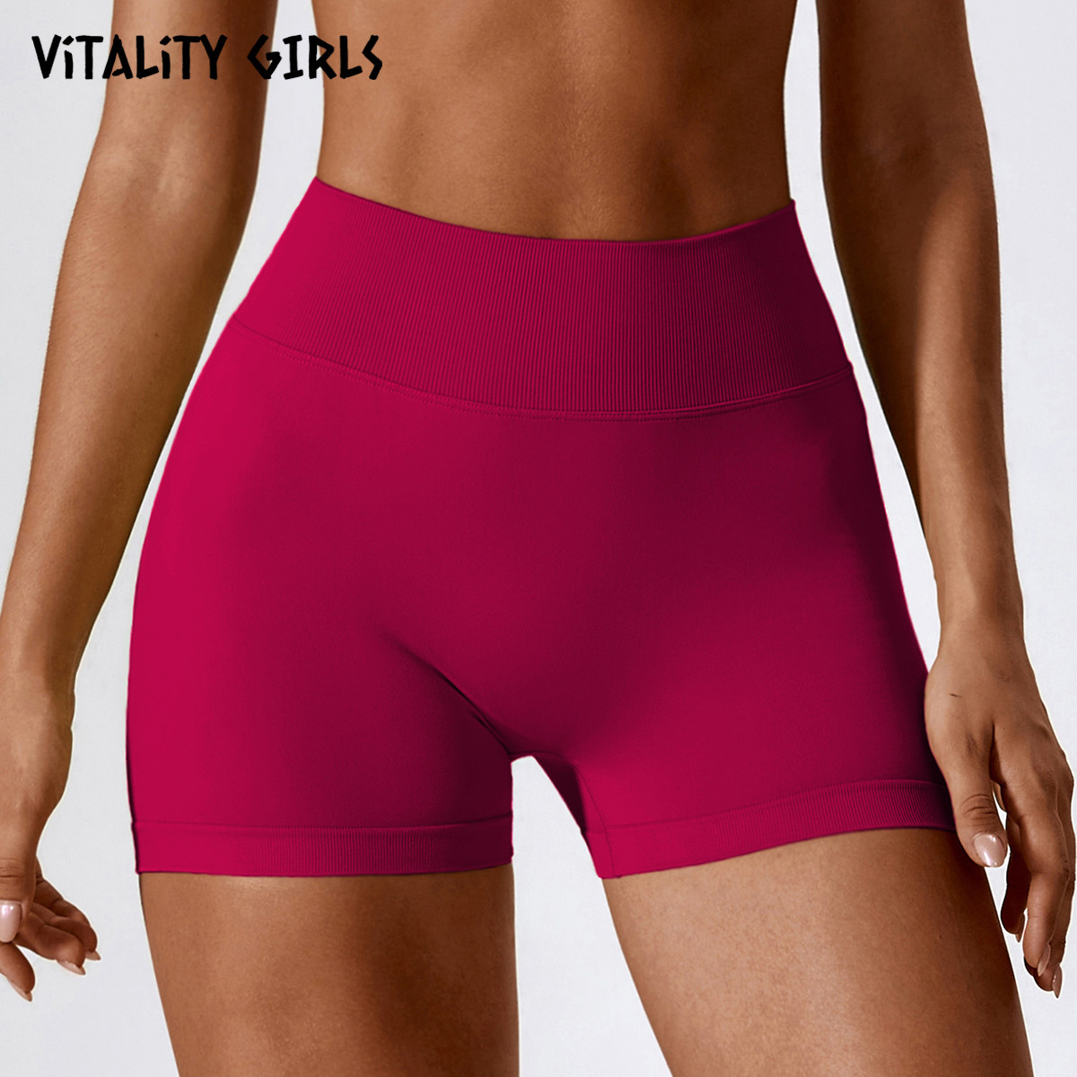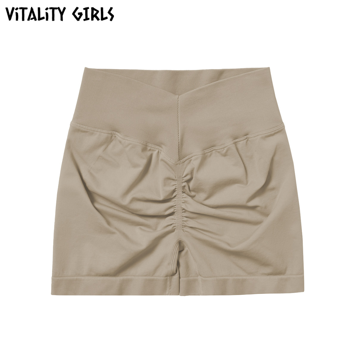 VitalityGirsl瑜伽运动短裤女V腰蜜桃提臀显瘦无缝紧身健身三分裤