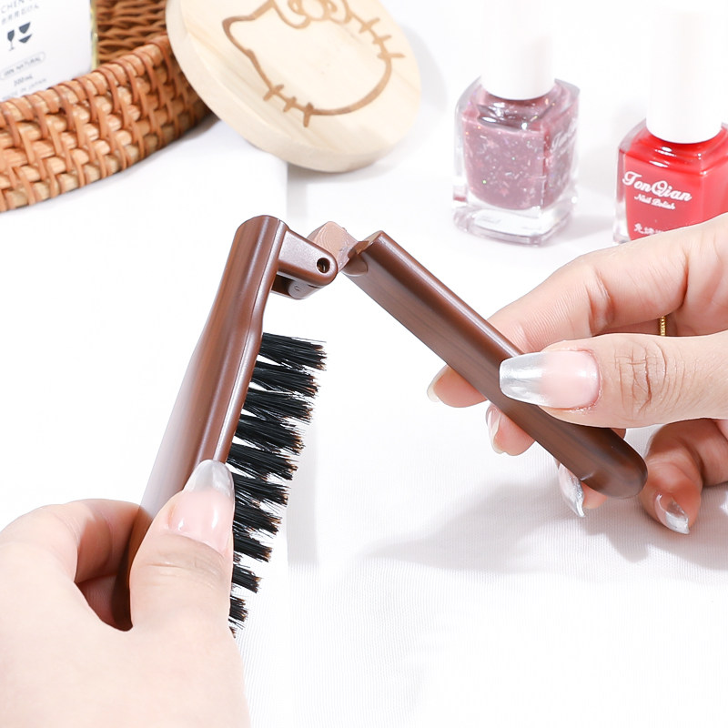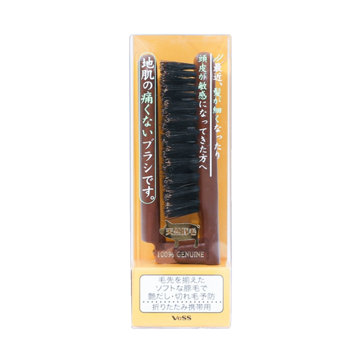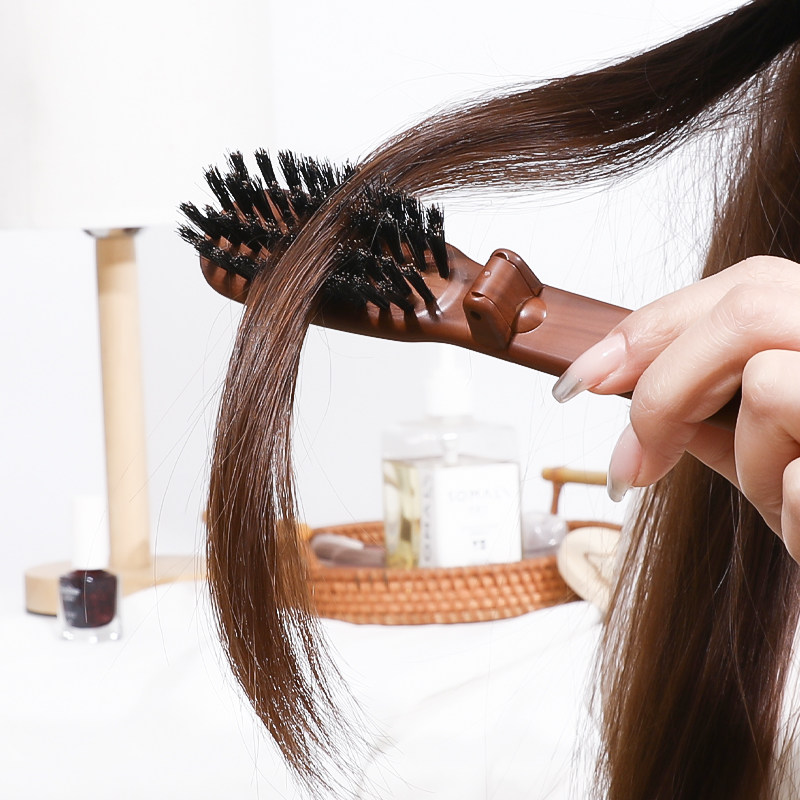 VESS日本进口猪鬃毛梳子折叠顺发梳便携随身窄齿小梳子蓬松不毛躁