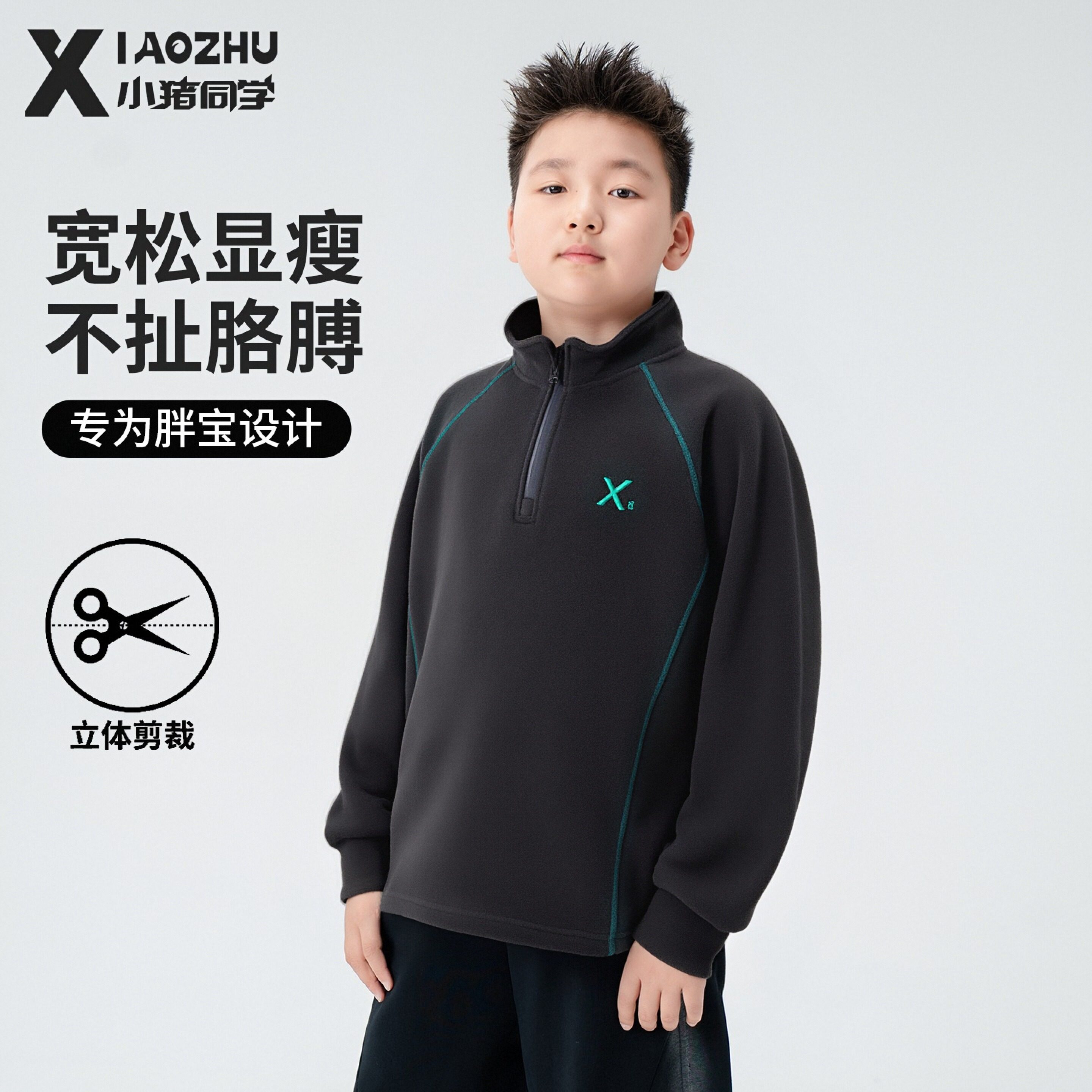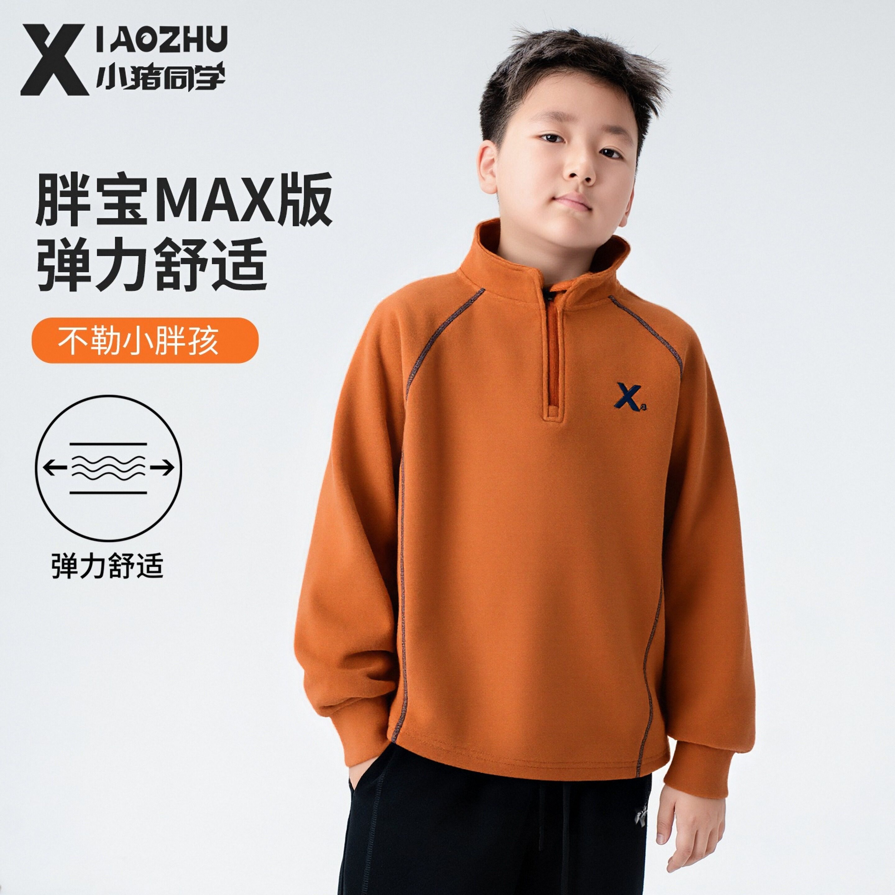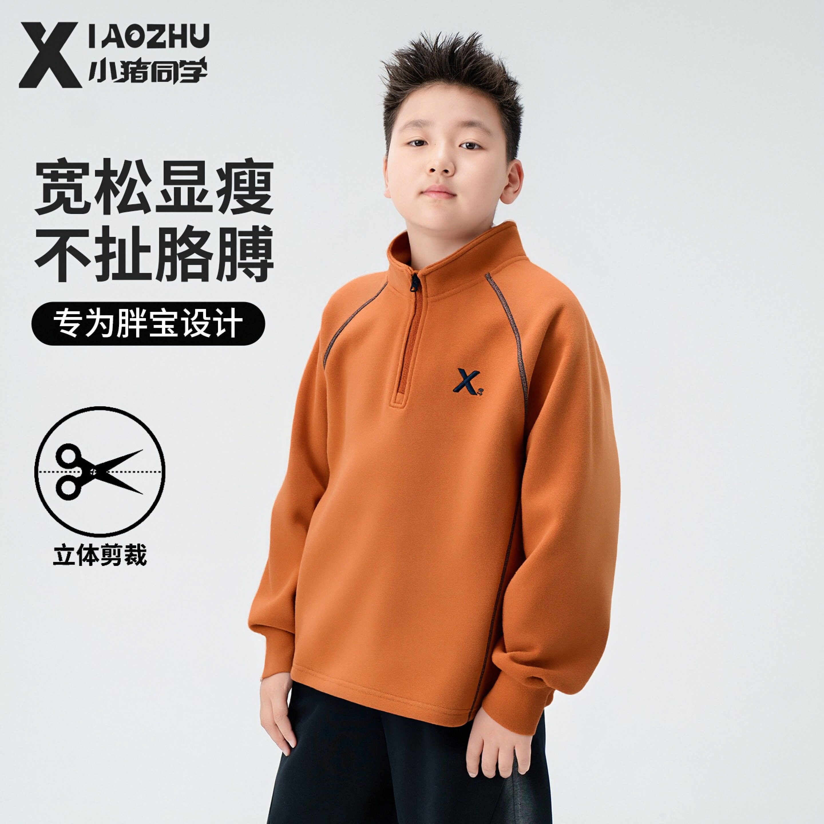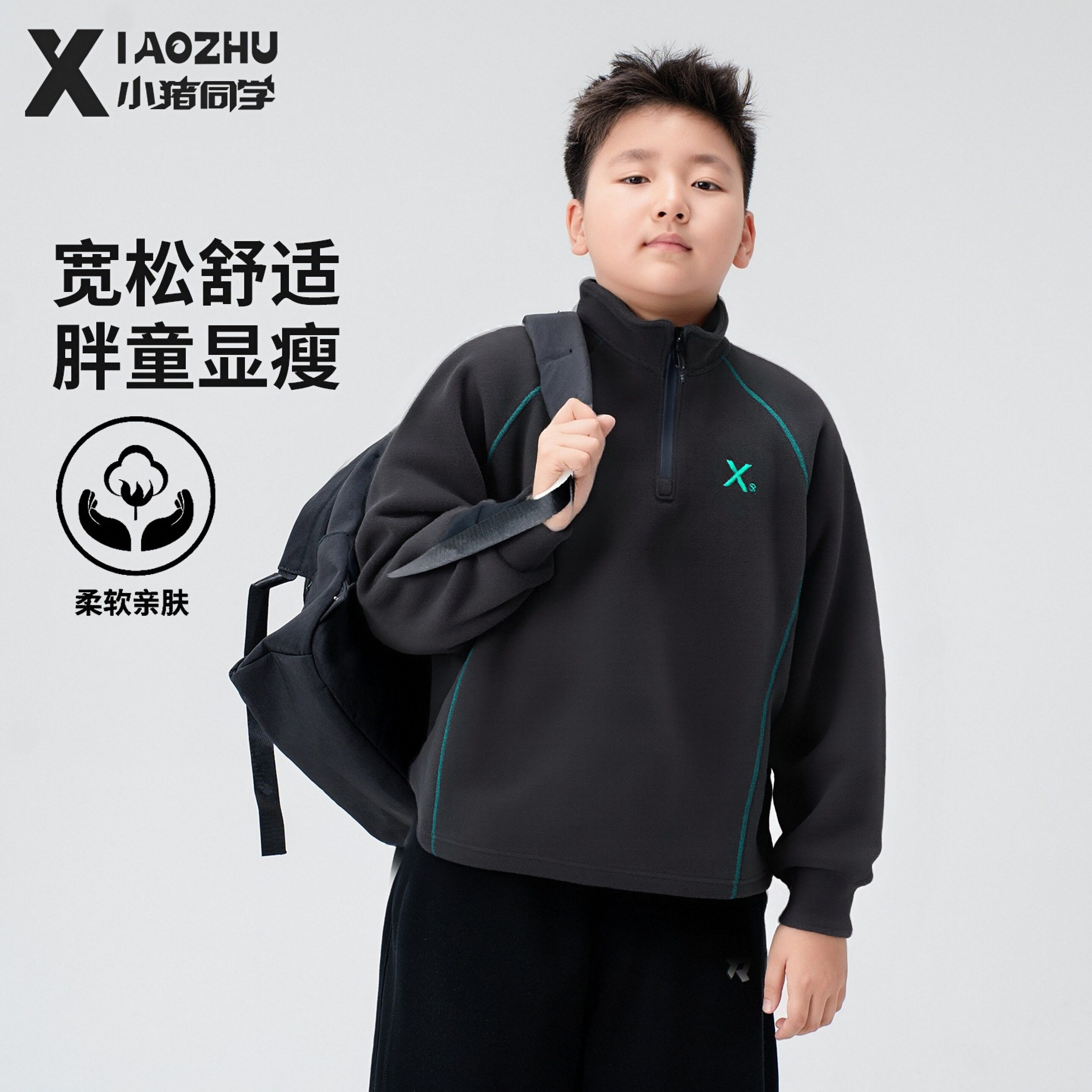 胖男童加绒半高领卫衣保暖加厚中大童打底衫大码加肥加大秋冬上衣