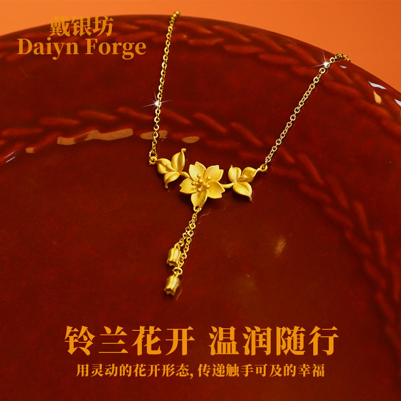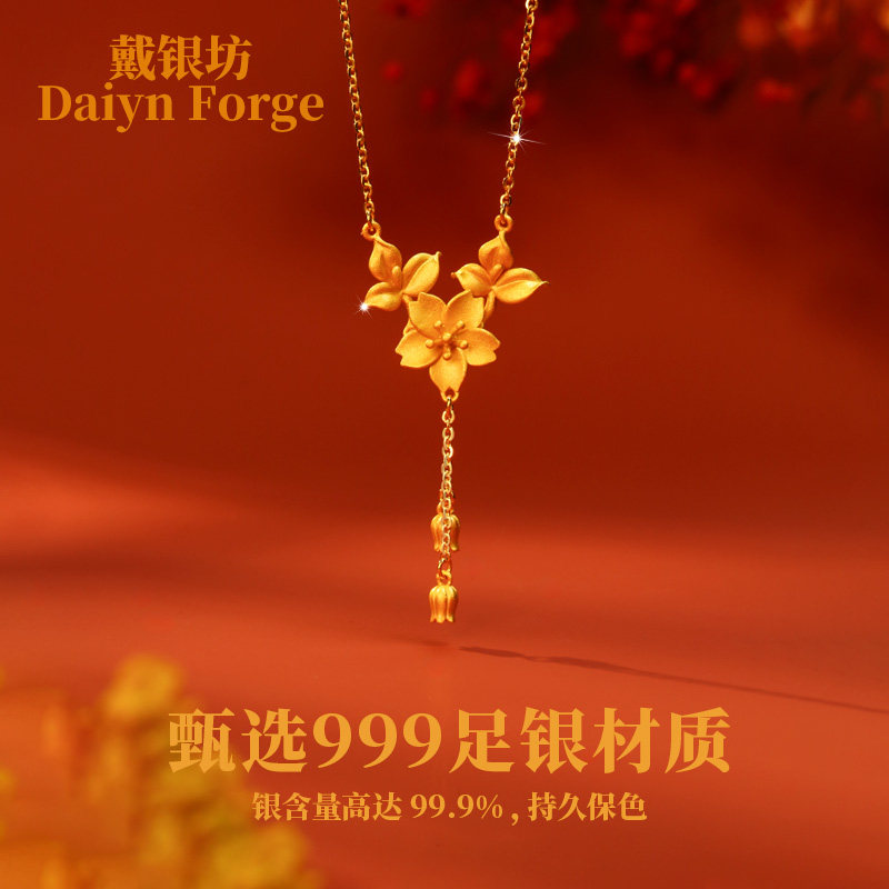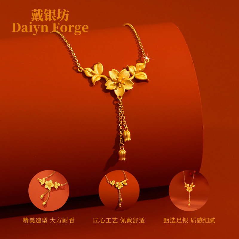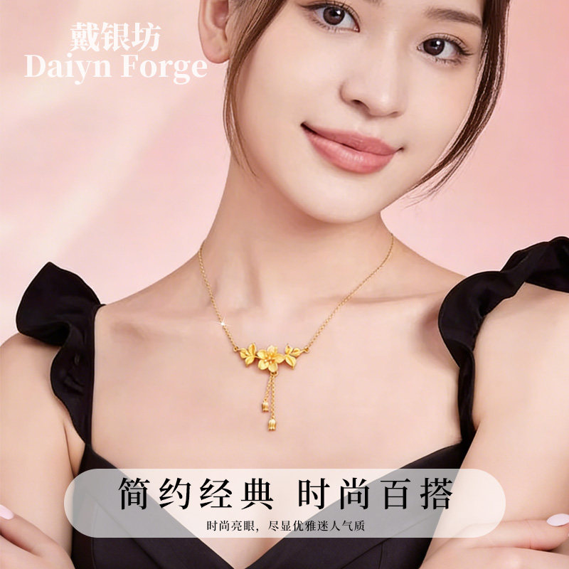 戴银坊花朵项链女2026新款百搭吊坠长项链黄金色轻奢高级感毛衣链