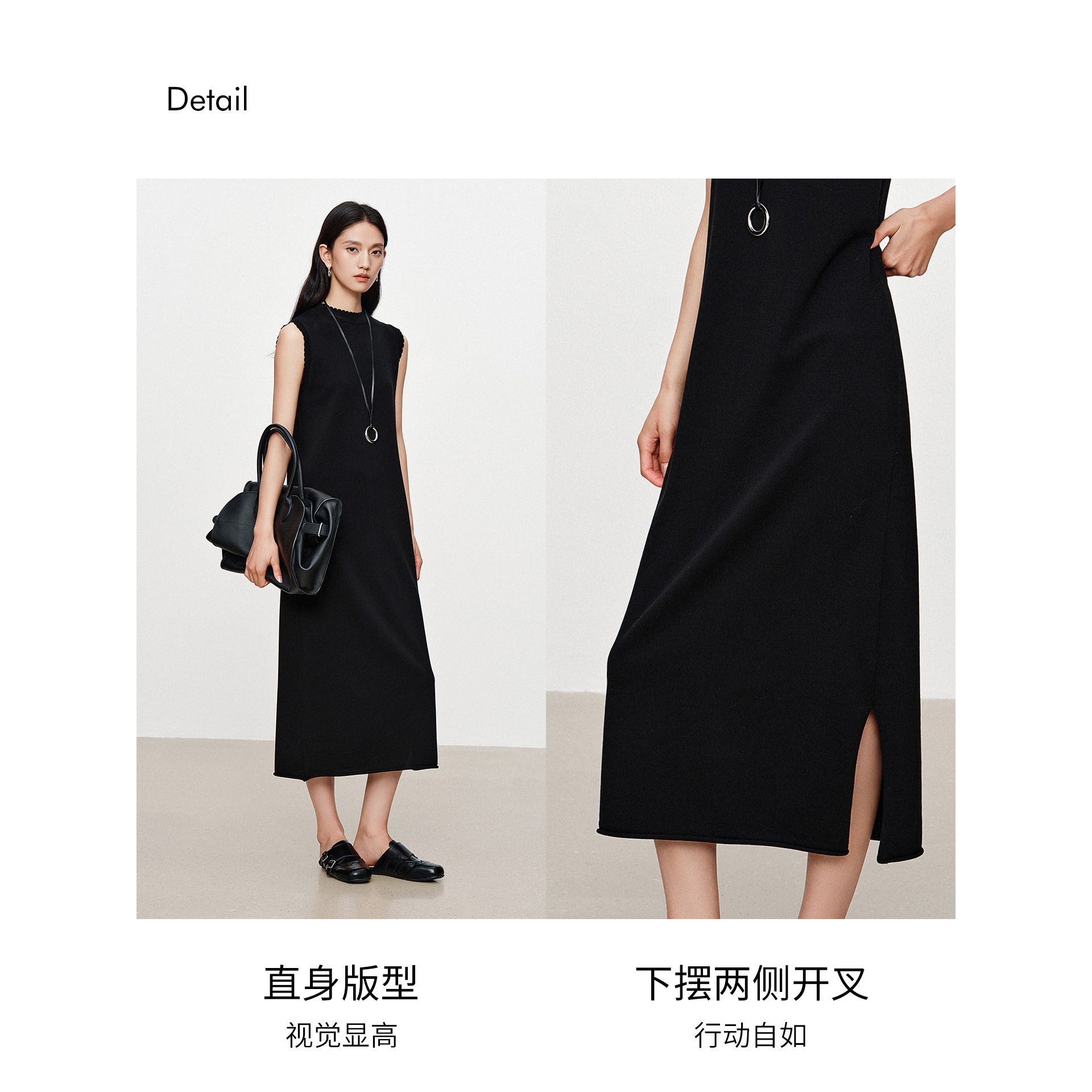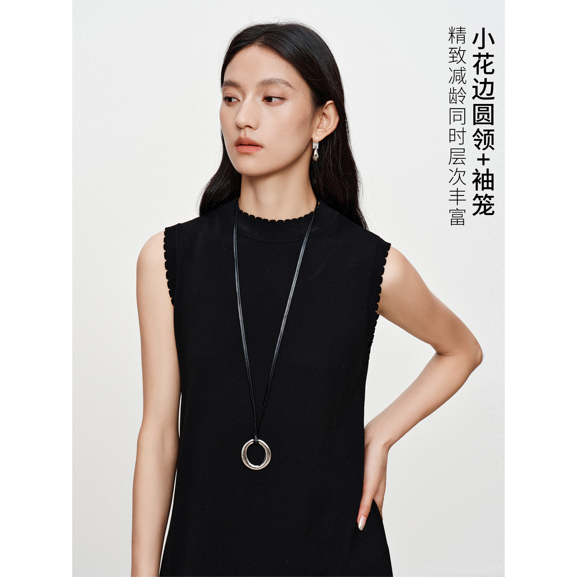 衣香丽影黑色无袖花边针织连衣裙女2026年春装新款莫代尔小黑裙子