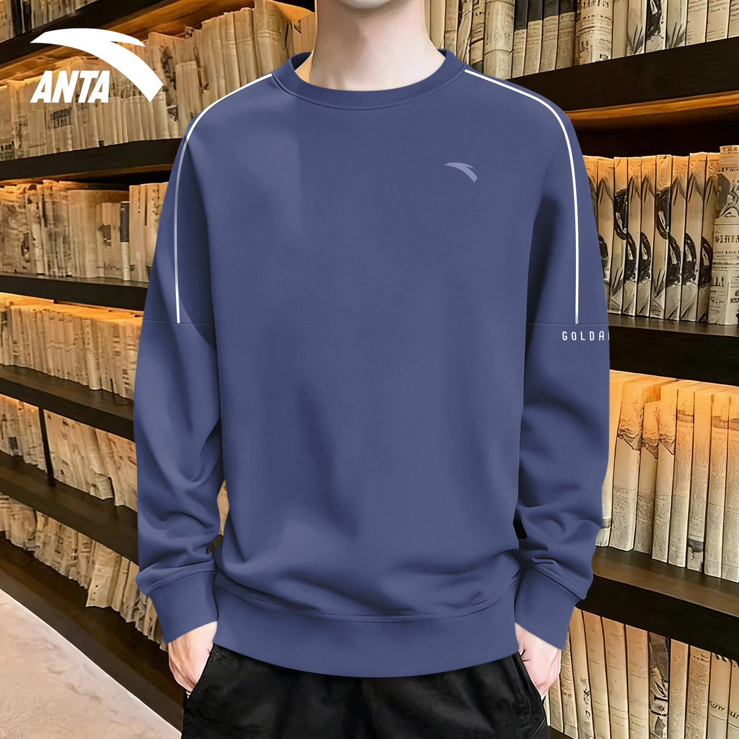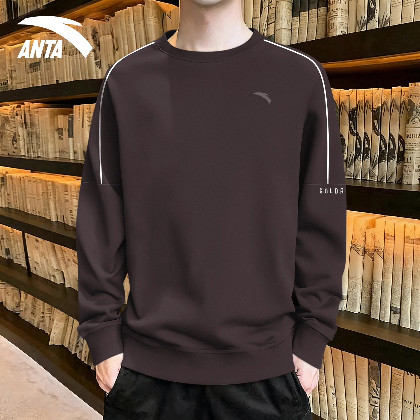 安踏卫衣男款灰色圆领2026新款冬季青少年无帽加绒运动长袖棉t恤