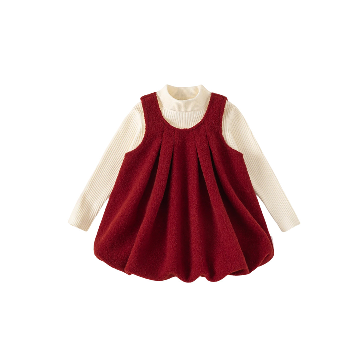 INSbobo女童套装裙2025冬季新儿童红色连衣裙洋气长袖公主裙秋冬