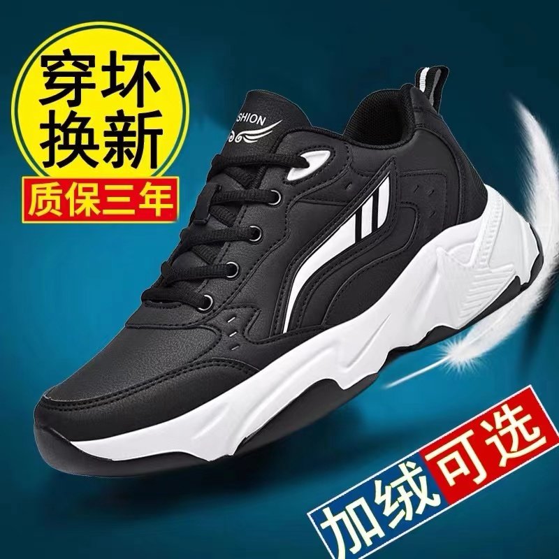 新跑步鞋男款秋冬牛筋底旅游鞋青少年皮面防水加绒运动鞋棉鞋减震