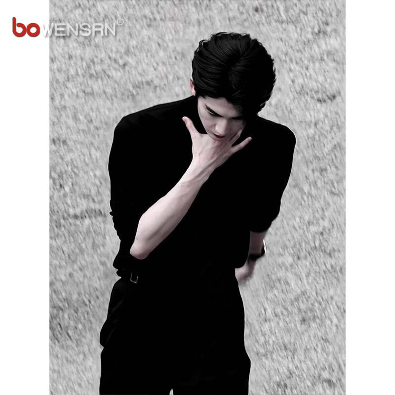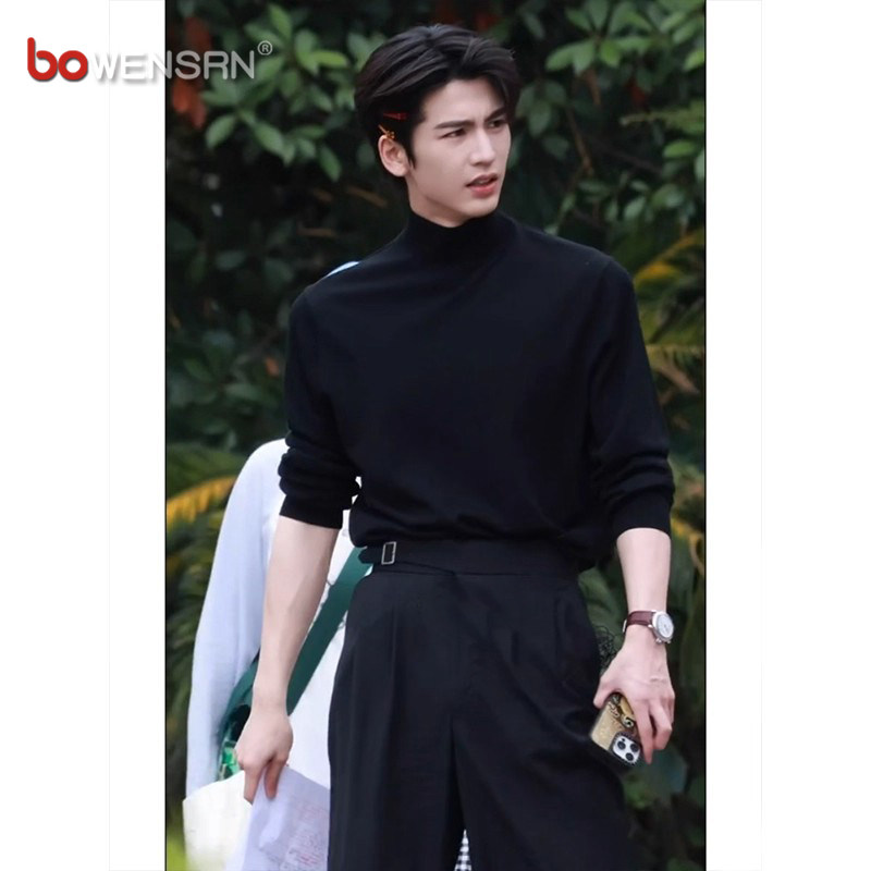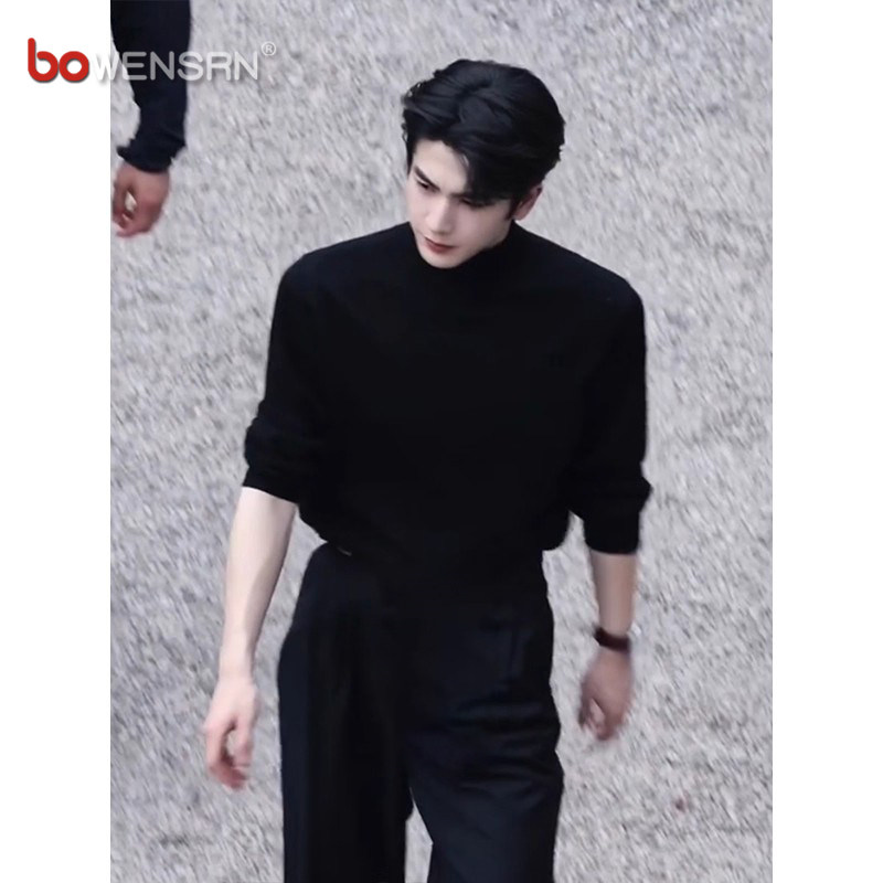 张凌赫同款黑色半高领毛衣男士2025新款秋冬季痞帅正肩针织衫男款
