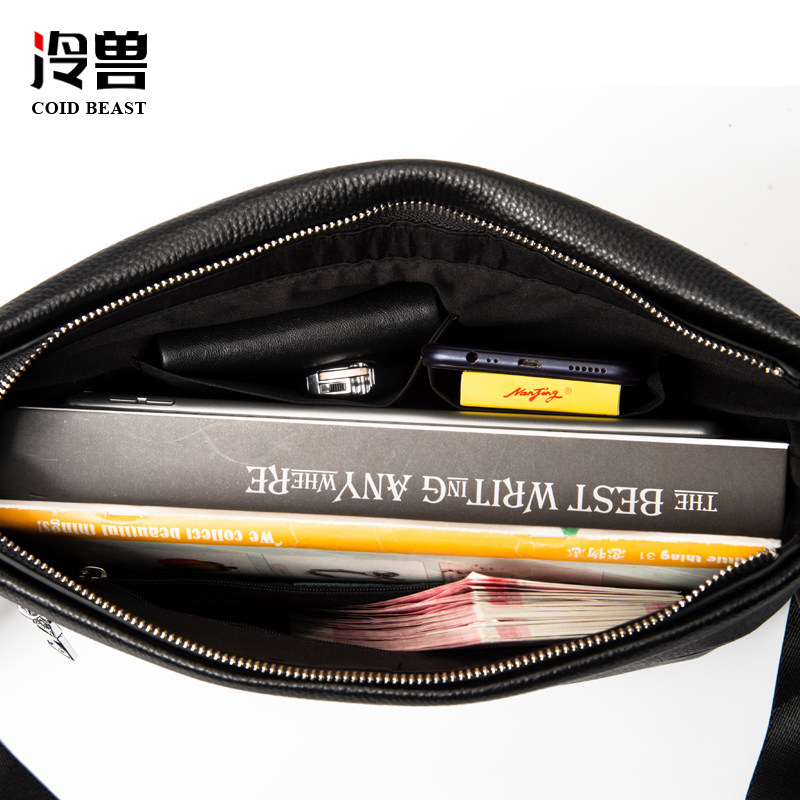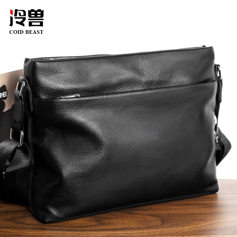 冷兽真皮男包单肩包男款横款商务休闲头层牛皮男士包包斜挎背包包