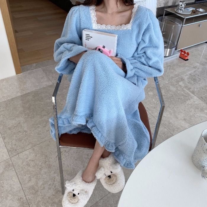 胖mm大码珊瑚绒长款睡裙女秋冬季新款加厚保暖宽松韩版居家连衣裙