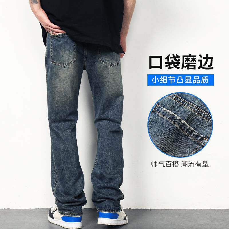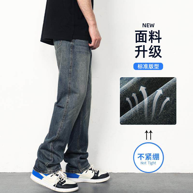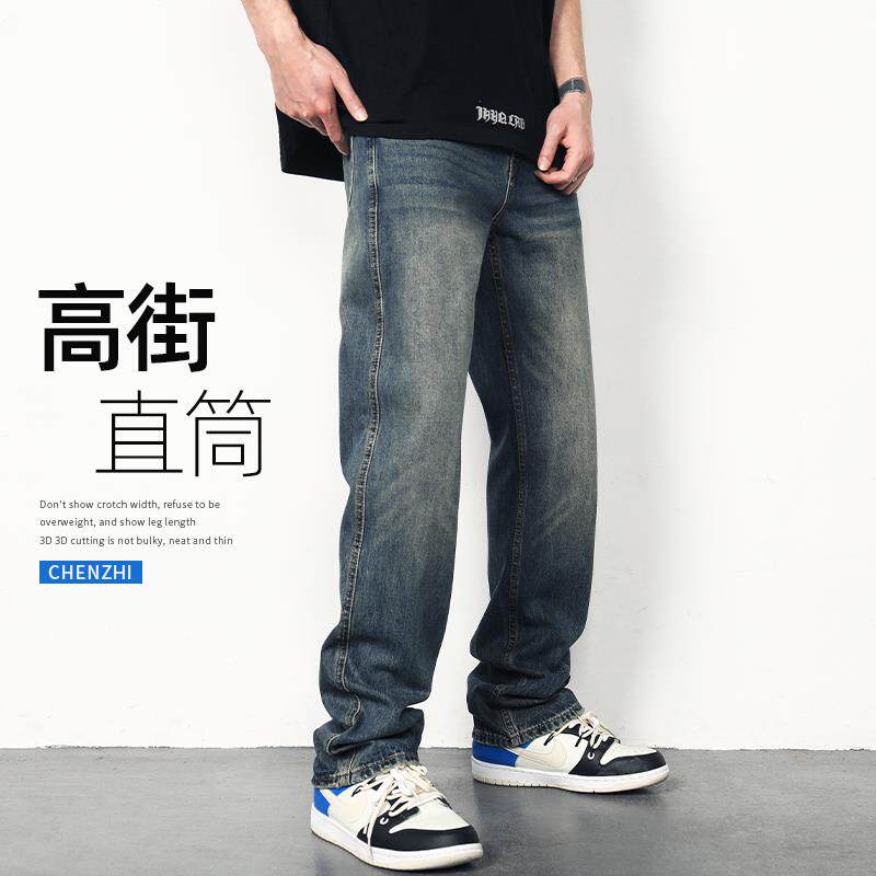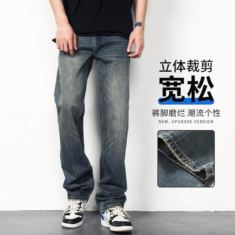 夏季新款牛仔裤男士宽松复古美式高街裤子男薄款水洗男生直筒男裤