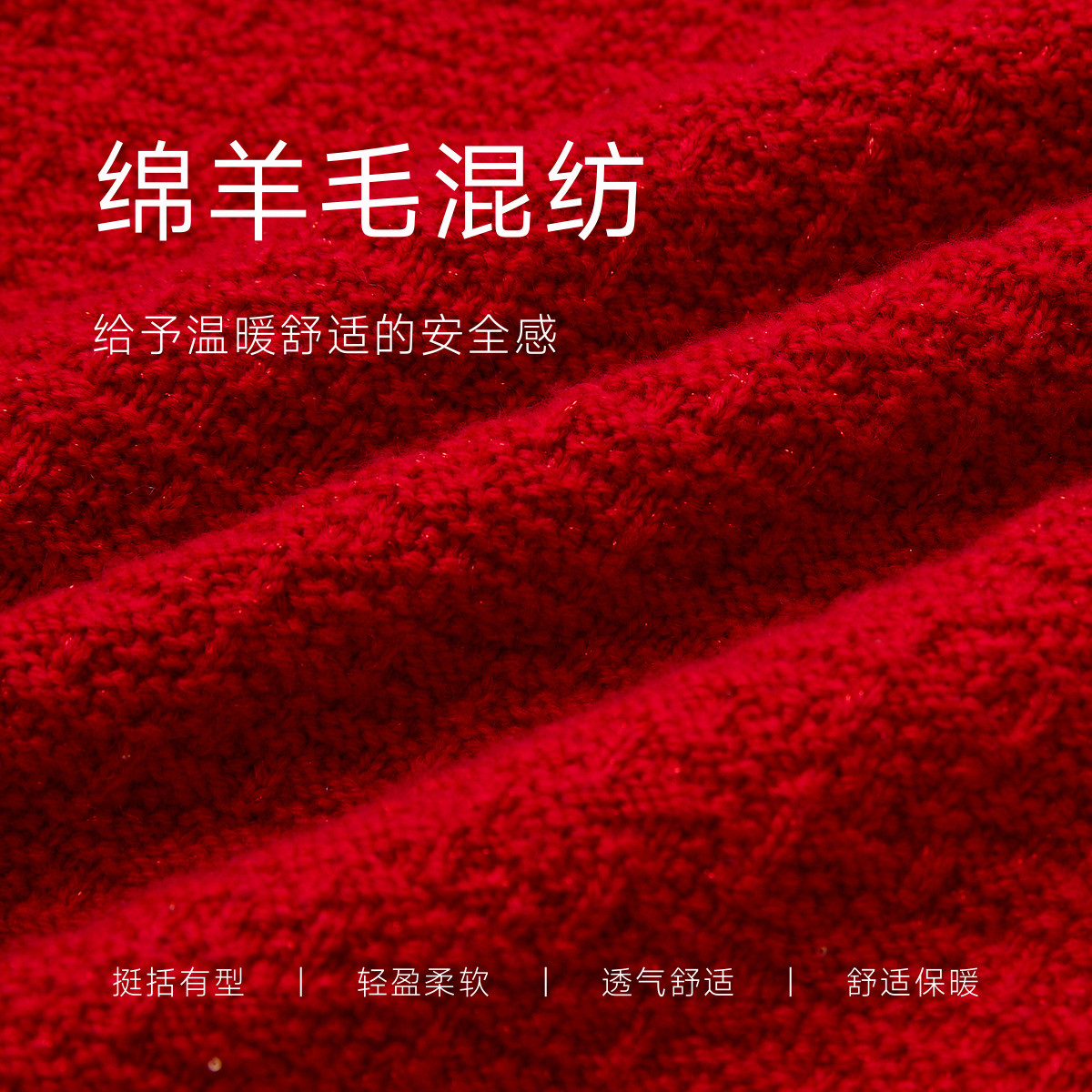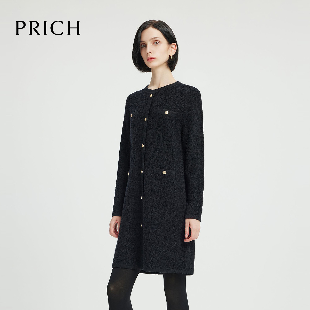 【羊毛】PRICH时尚小香风新年红色连衣裙春季新款收腰显瘦长裙女