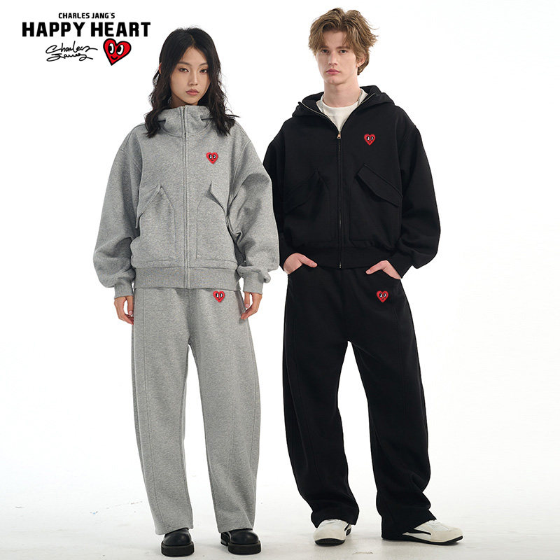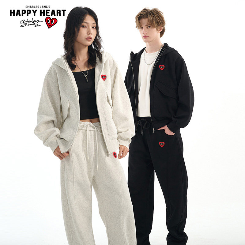 查尔斯桃心连帽卫衣男女款秋冬季微短拉链开衫外套休闲长裤一套装