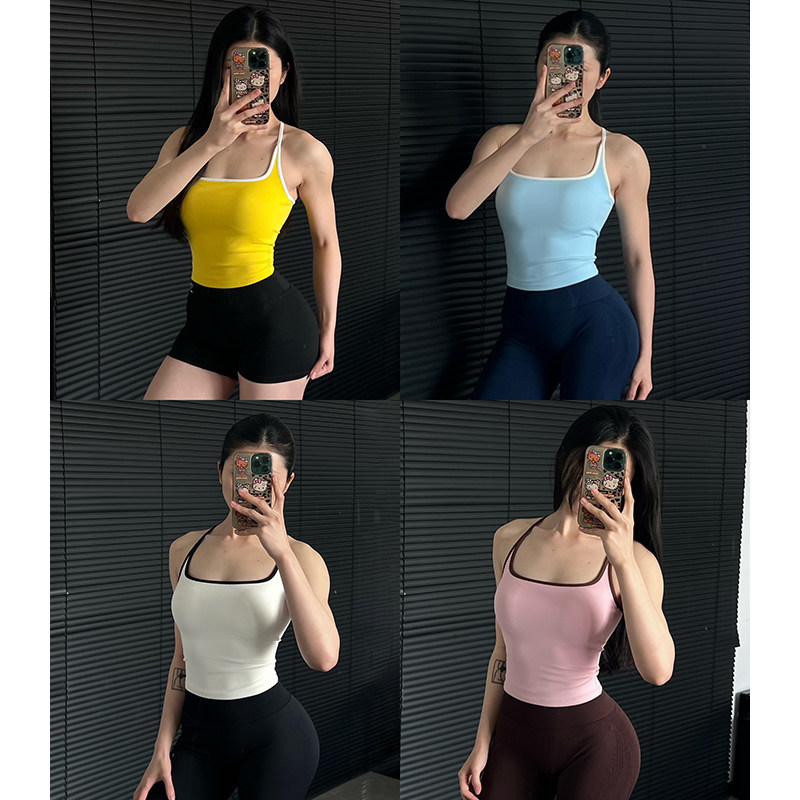 一体胸垫外穿瑜伽背心女韩国健身聚拢防震细带时尚美背跑步文胸