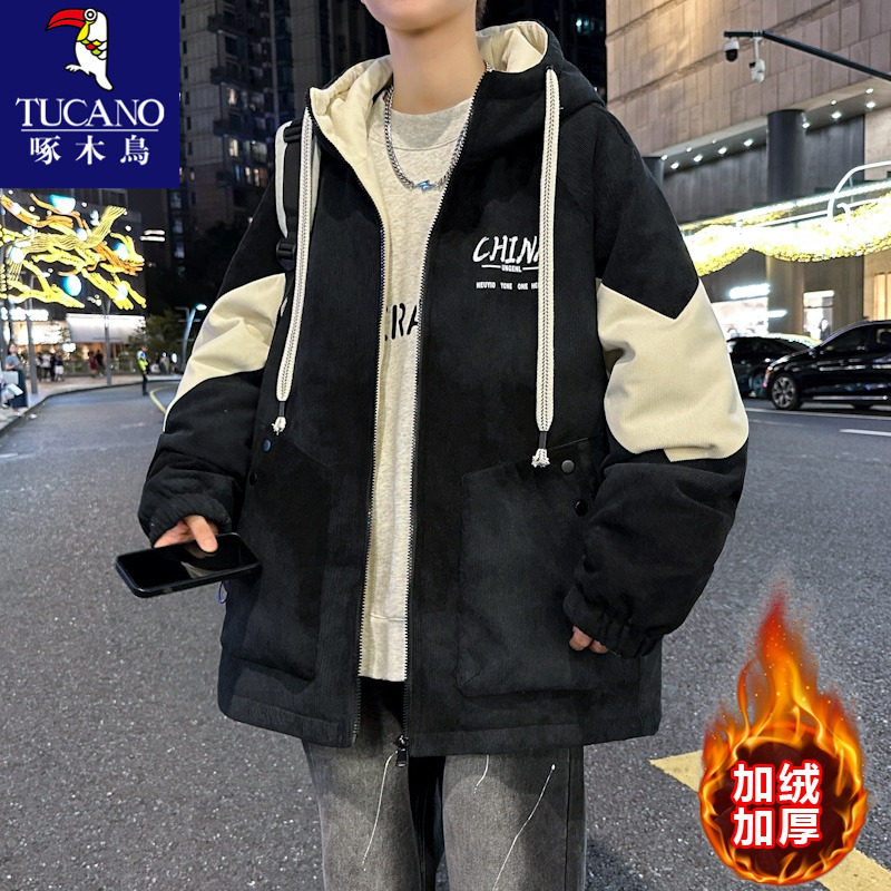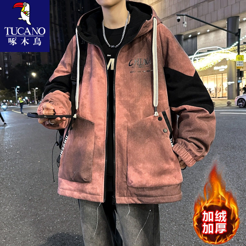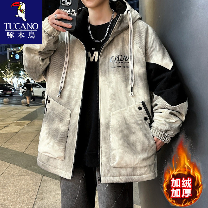 啄木鸟】秋冬季青少年潮流外套男款初中高中学生加绒加厚冬装夹克