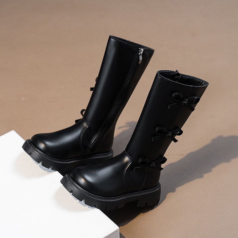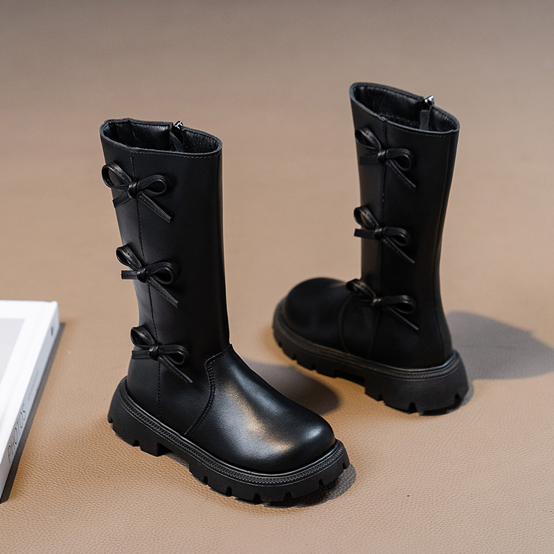 女童长筒靴2025秋冬季新款小女孩洋气蝴蝶结加绒保暖时尚公主靴子