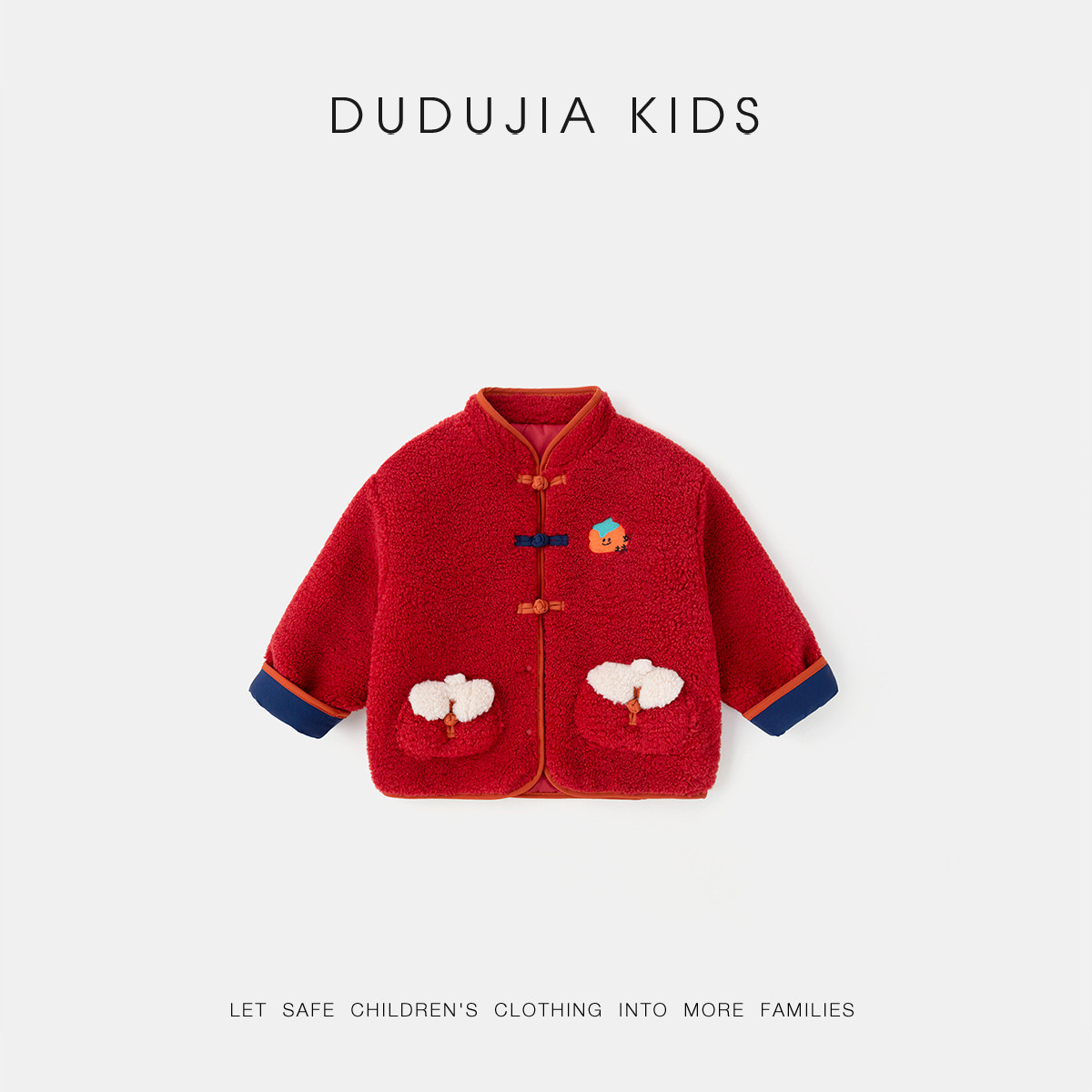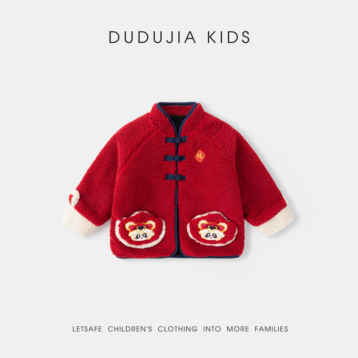 嘟嘟家男童外套红色冬新年宝宝拜年服新中式女童周岁礼服儿童唐装