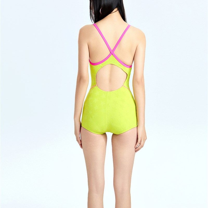 荧光绿竞速泳衣女款2025新款高级感绝美显瘦游泳衣平角连体带胸垫