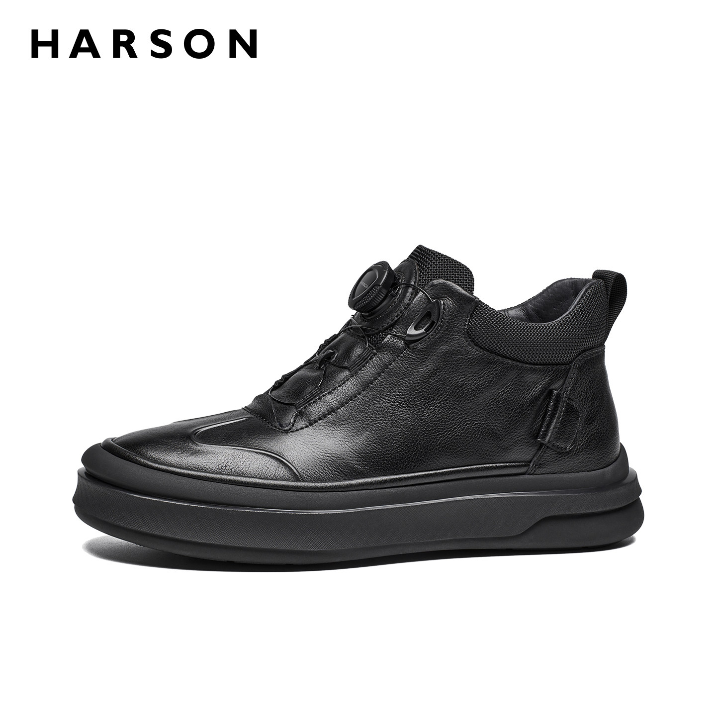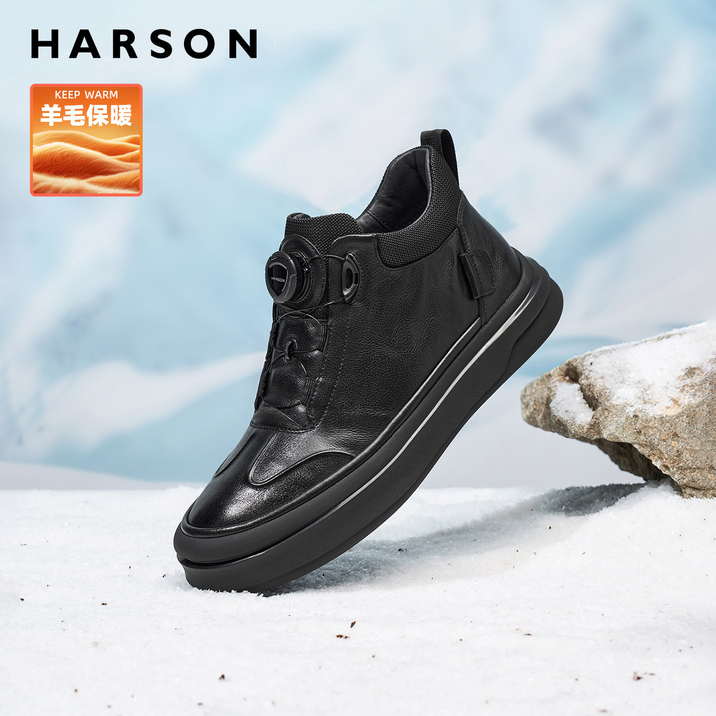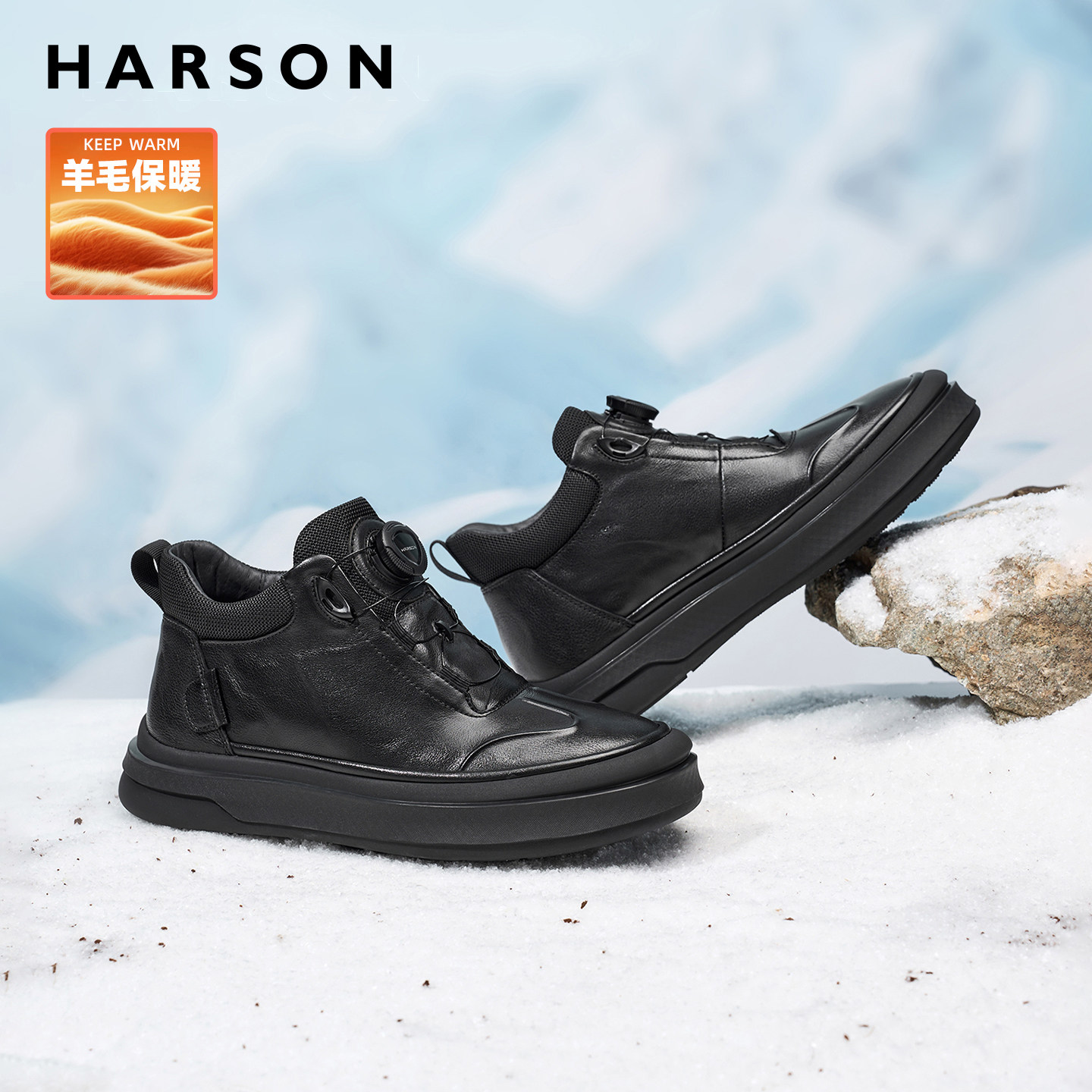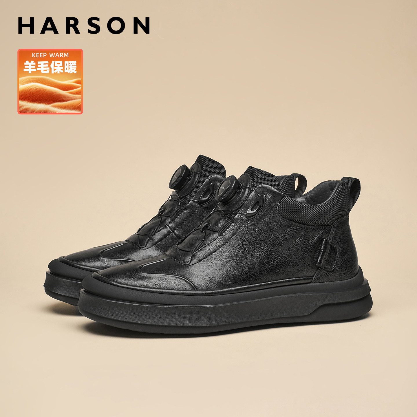 哈森冬季男鞋旋钮扣商务休闲皮鞋加绒高帮男士皮靴子2025新款棉鞋