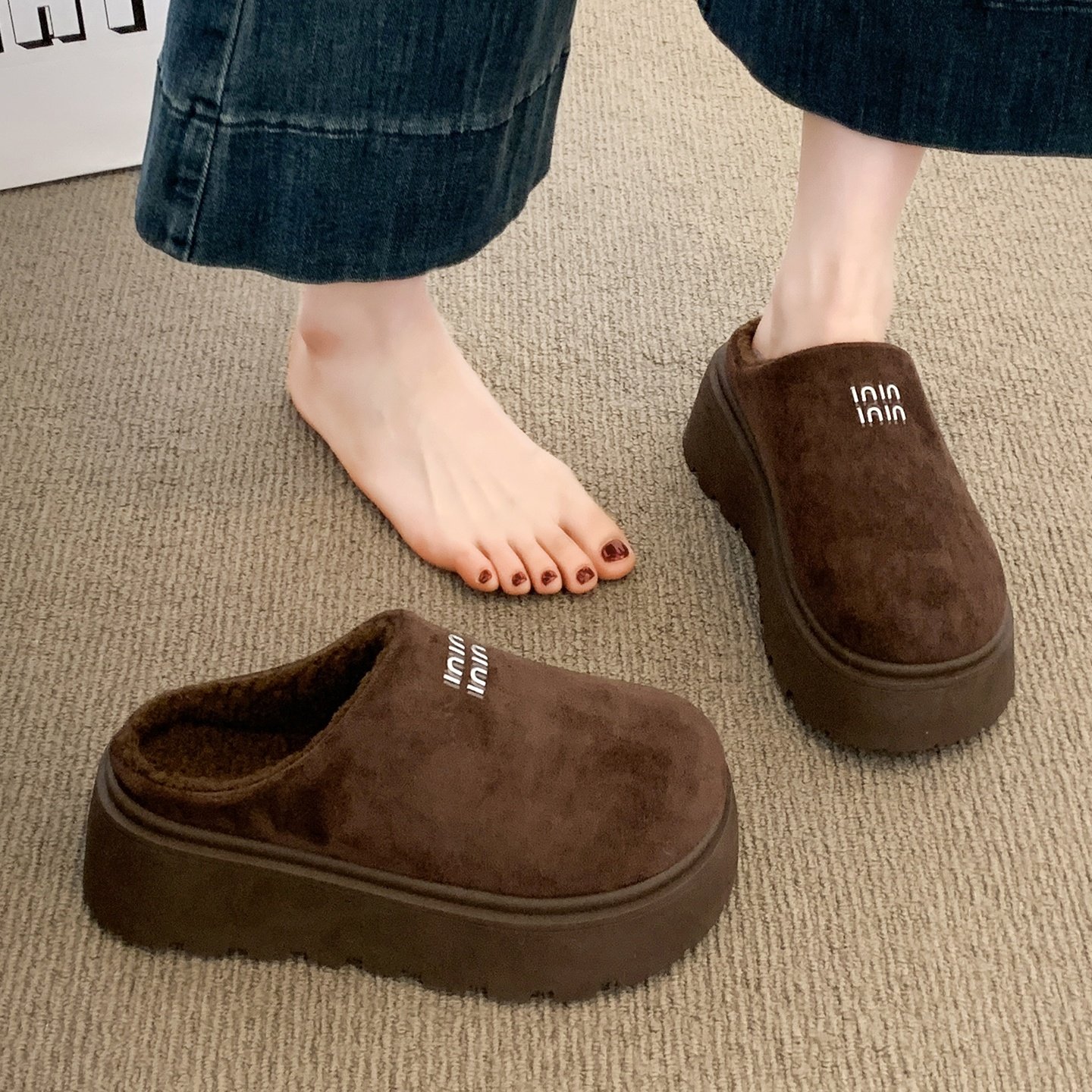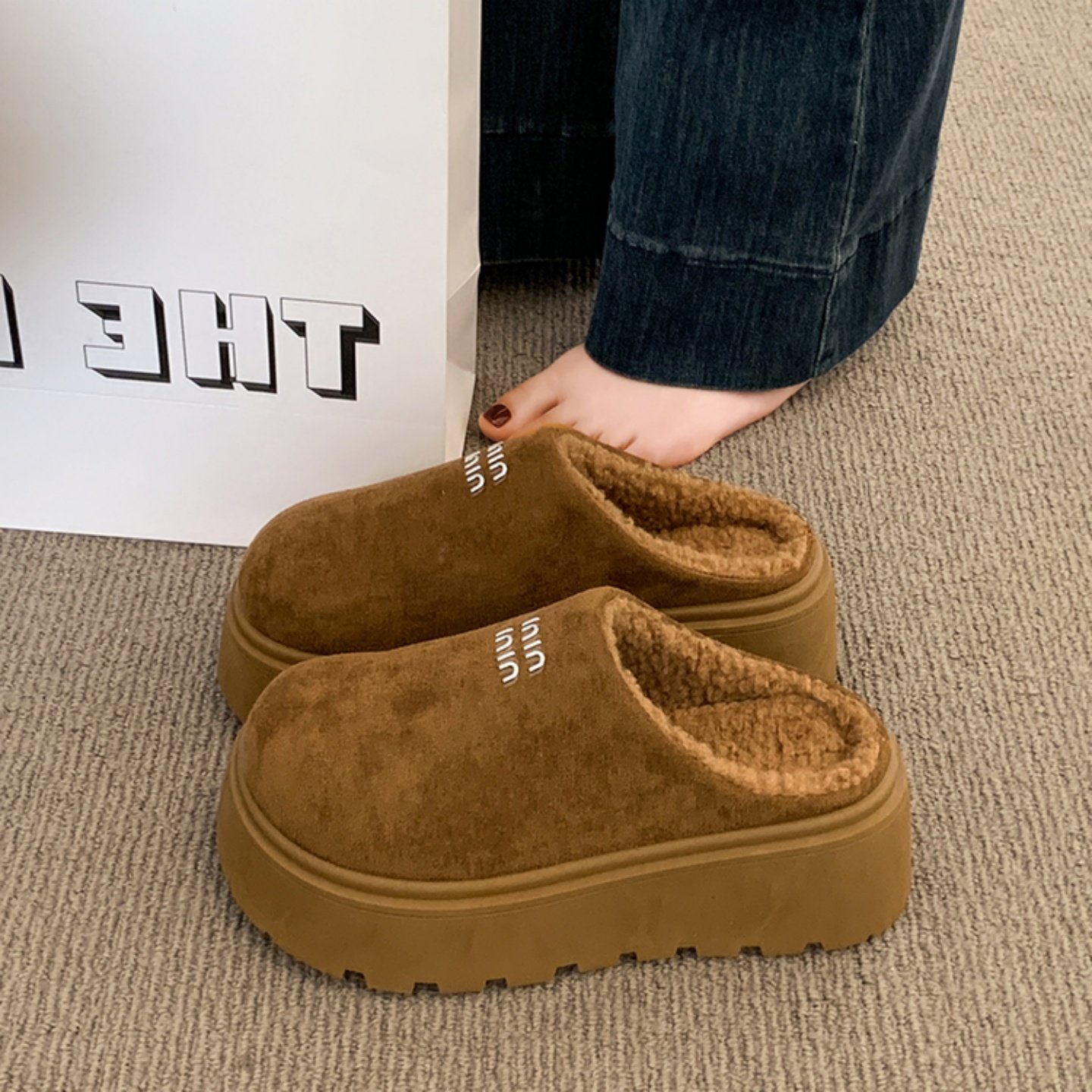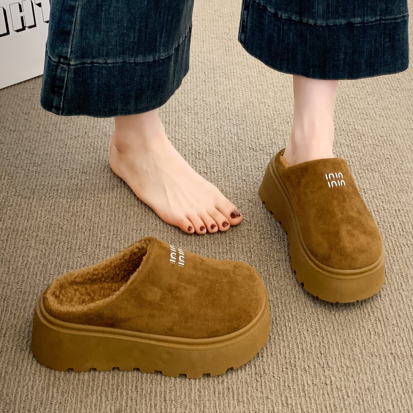 品牌真皮半拖勃肯鞋女2025新款冬季厚底外穿包头拖加绒雪地靴棉鞋
