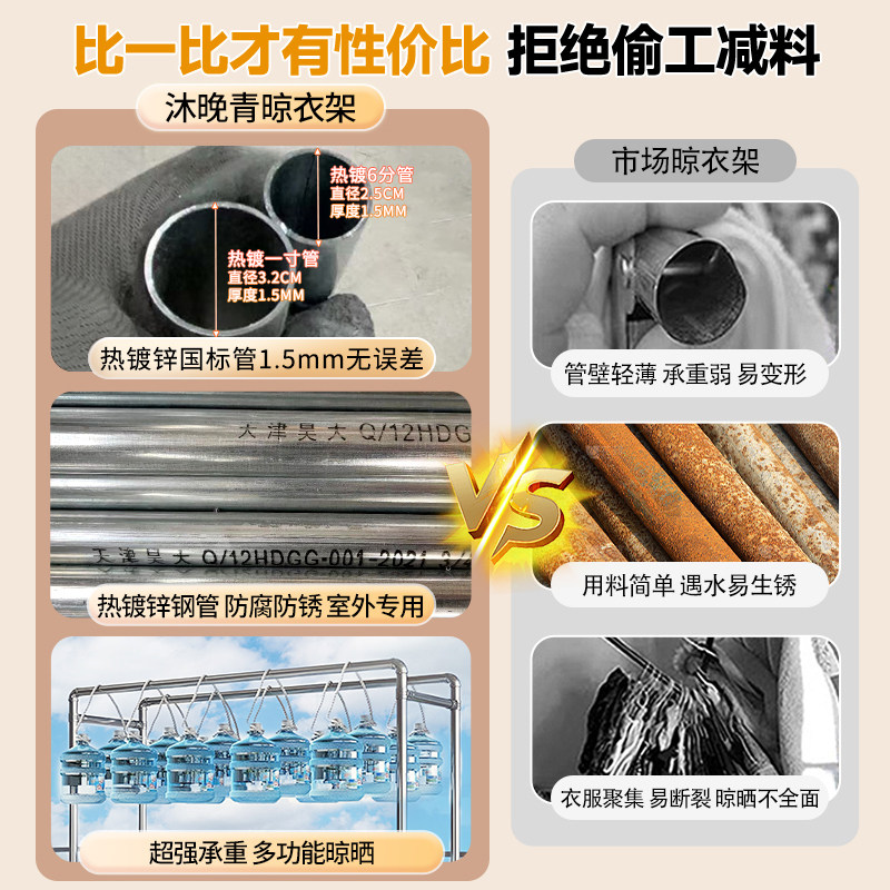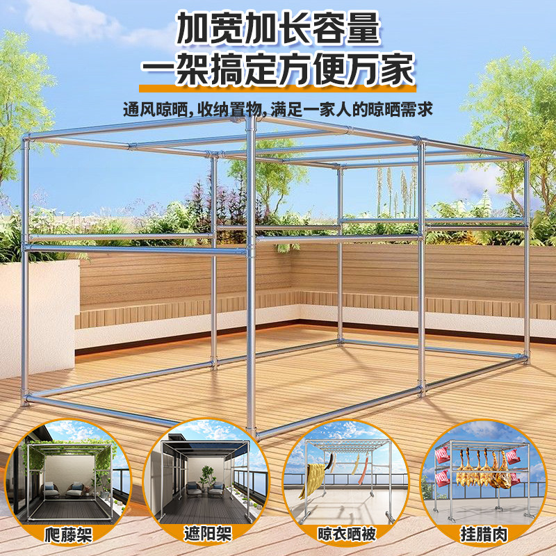 热镀锌钢管晾衣架家用落地式防风晒被架简易四方架户外露天晾晒架
