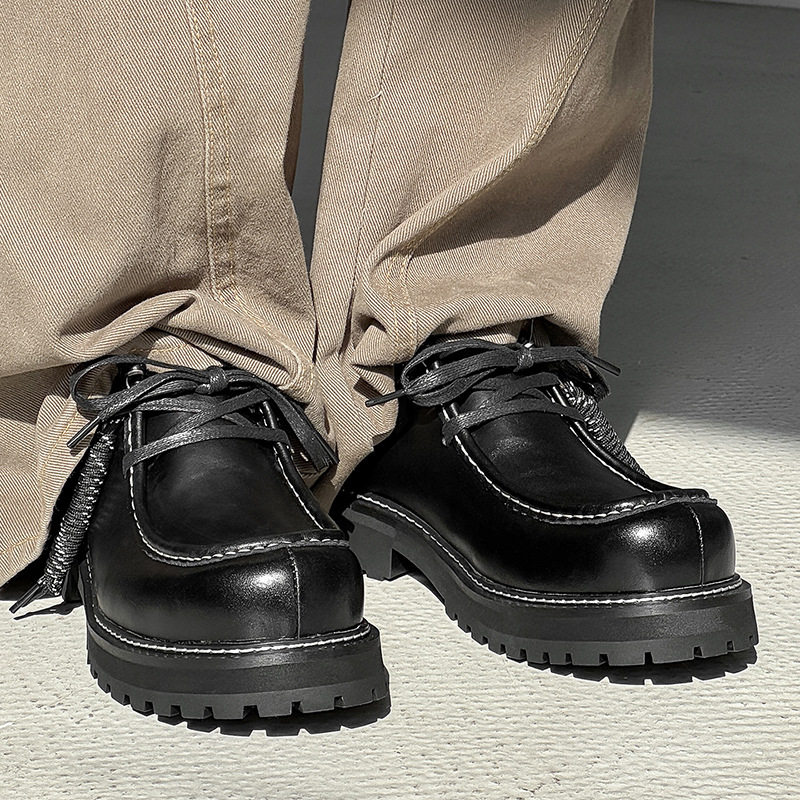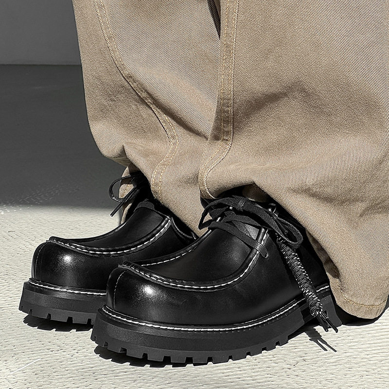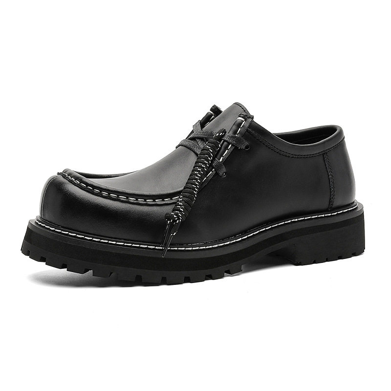 男士休闲皮鞋新款冬工作鞋高级感痞帅大头鞋子黑色厚底德比鞋
