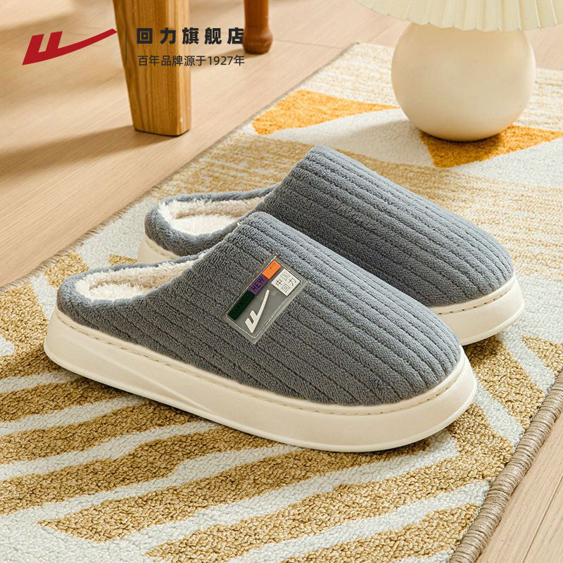 回力棉拖鞋男2026新款冬季室内家居加绒厚底保暖男士毛绒拖鞋冬天