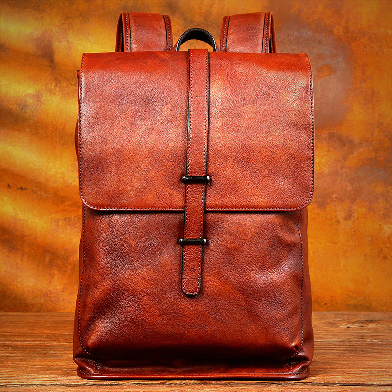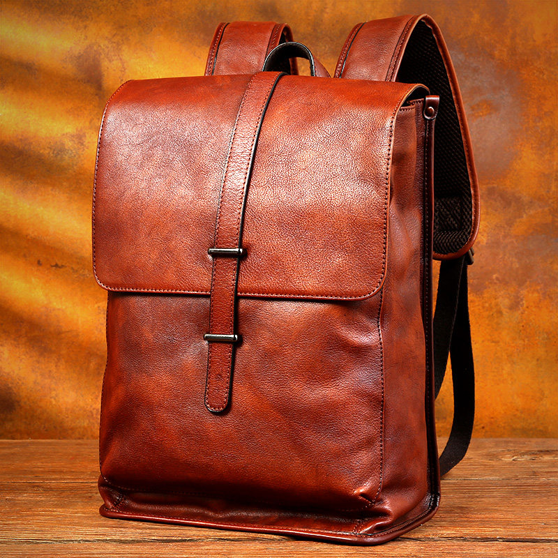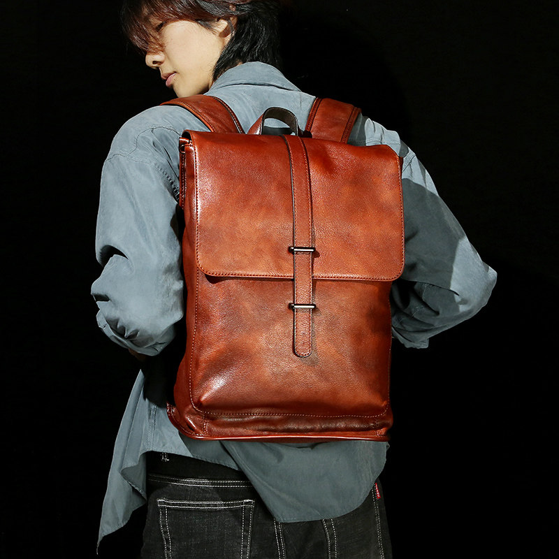 慢时光纯手工擦色真皮背包电脑包头层牛皮双肩包男女款休闲旅行包