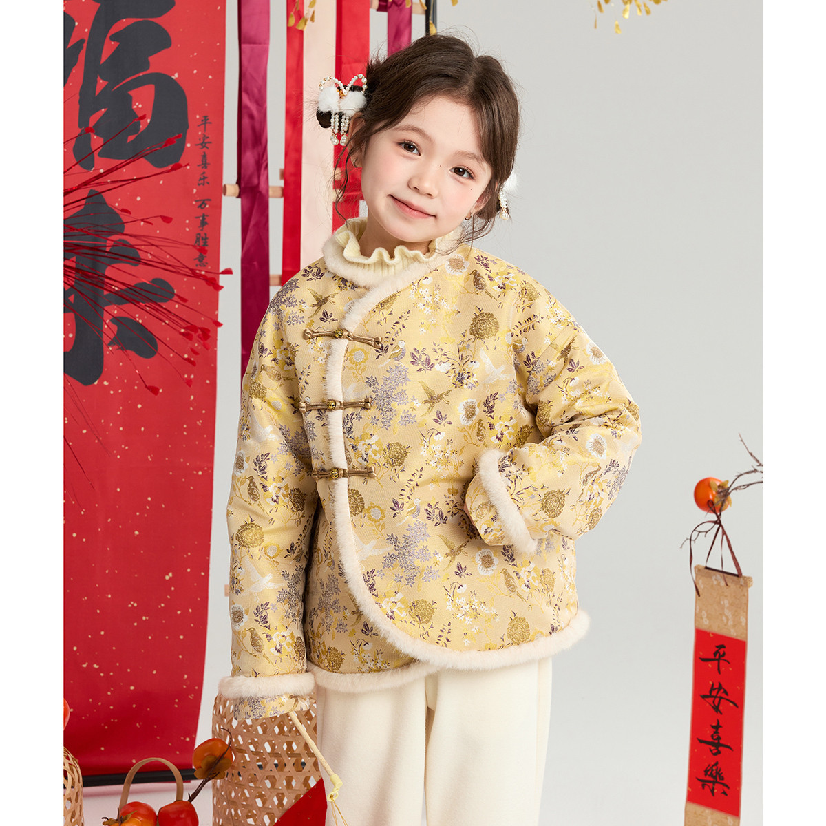 布丁哈鲁冬装女童童装上衣2026秋冬季新款儿童国风夹棉新年外套