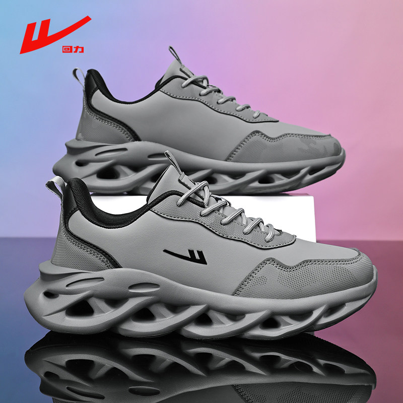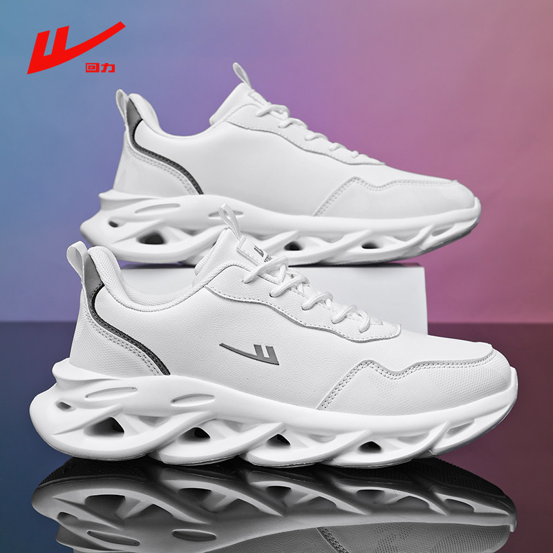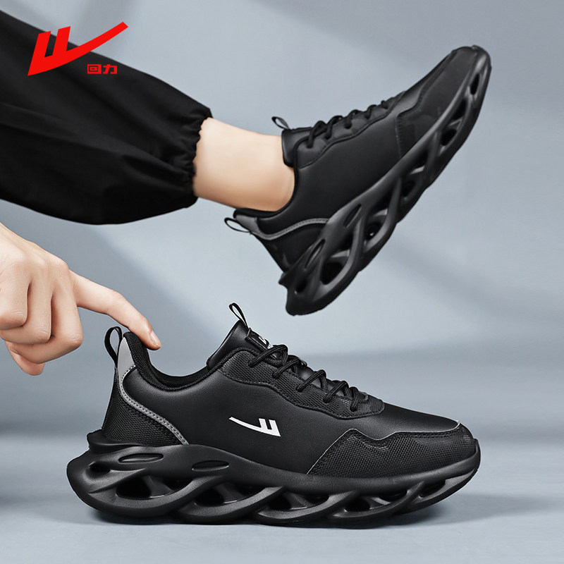 回力正品运动男鞋秋冬皮面帕拉鞋男款防水超轻跑步减震纯黑老爹鞋