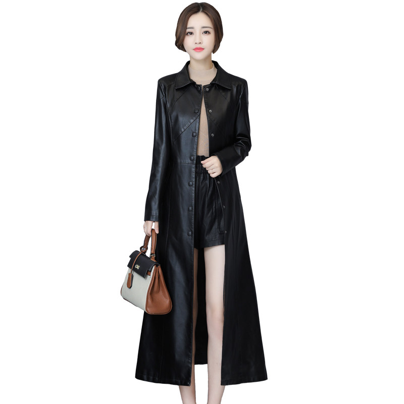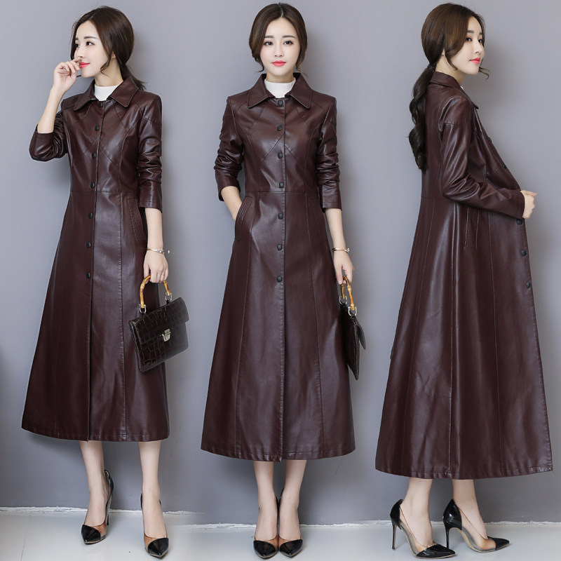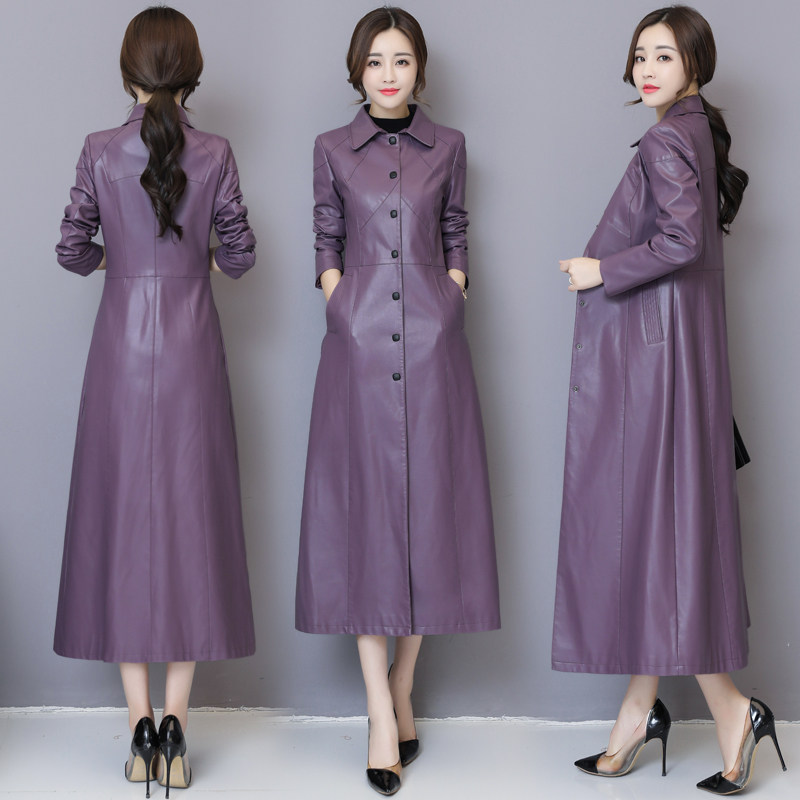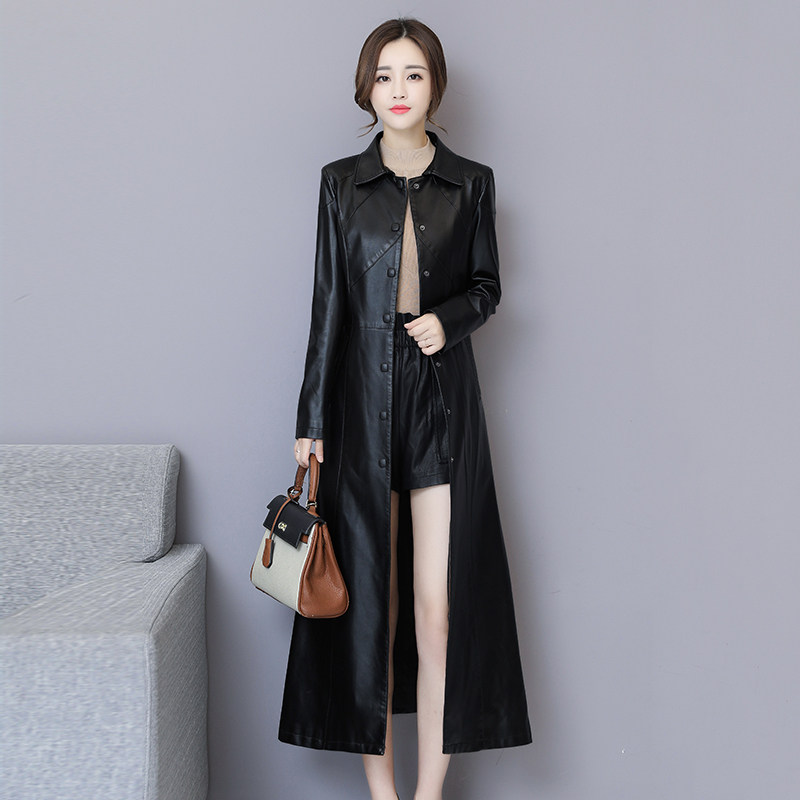2025年春秋新款真皮皮衣女中长款修身绵羊皮风衣韩版过膝加棉外套