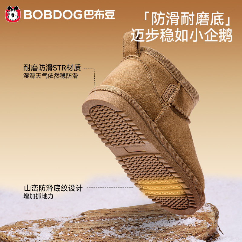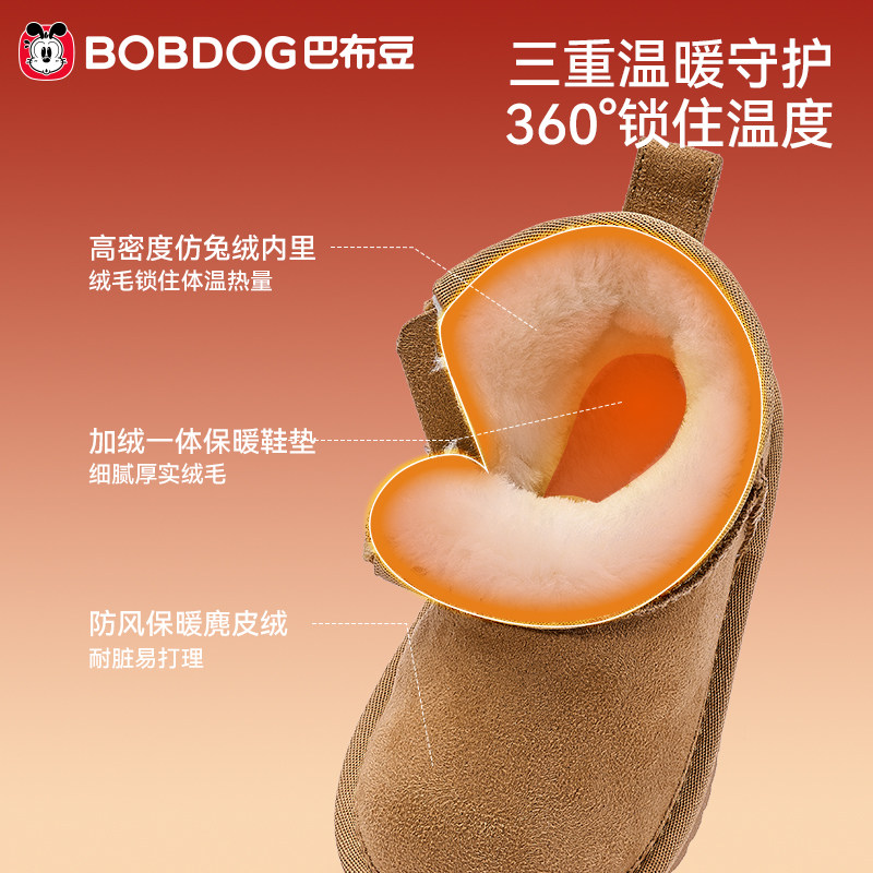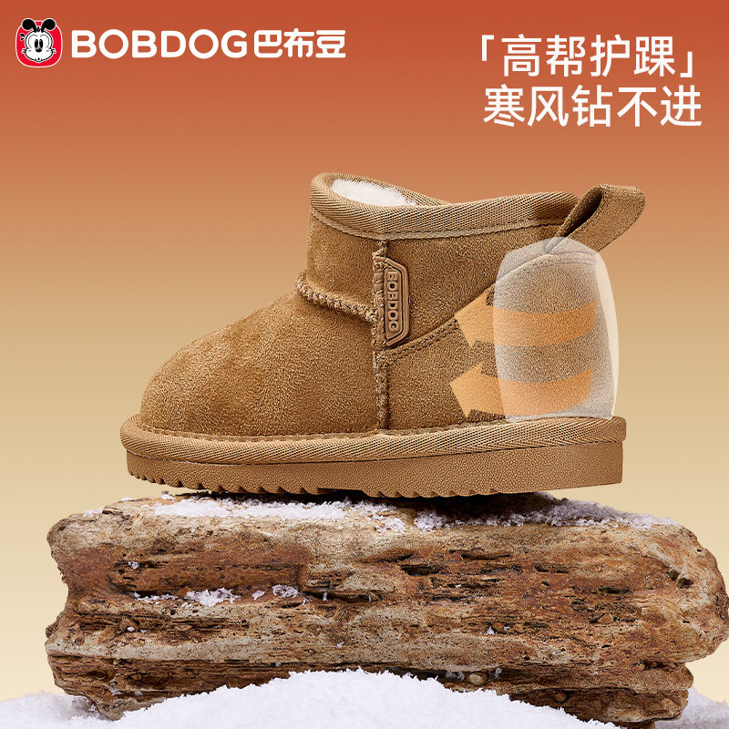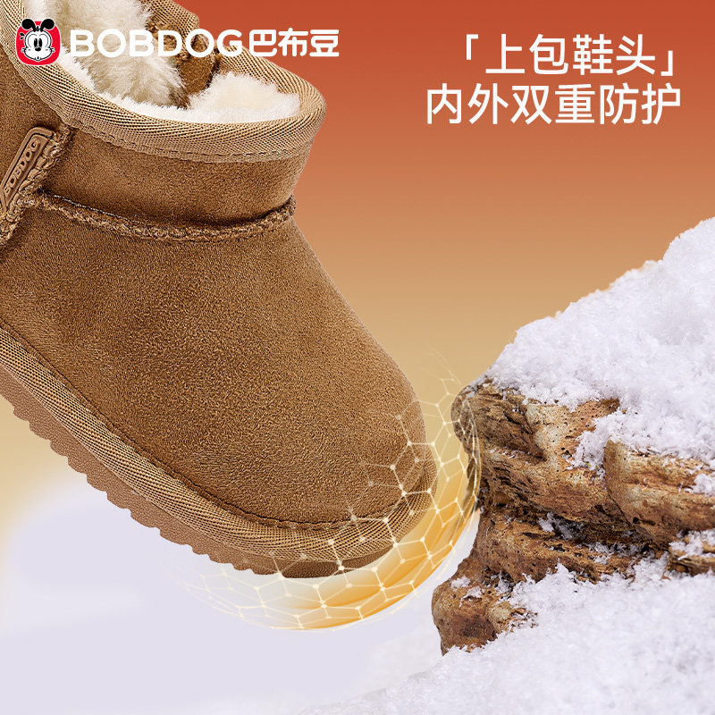 巴布豆儿童雪地靴男童童鞋冬季新款大棉防滑加绒棉靴宝宝鞋子棉鞋