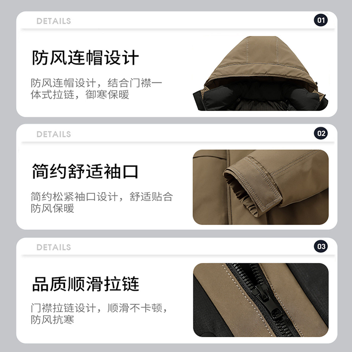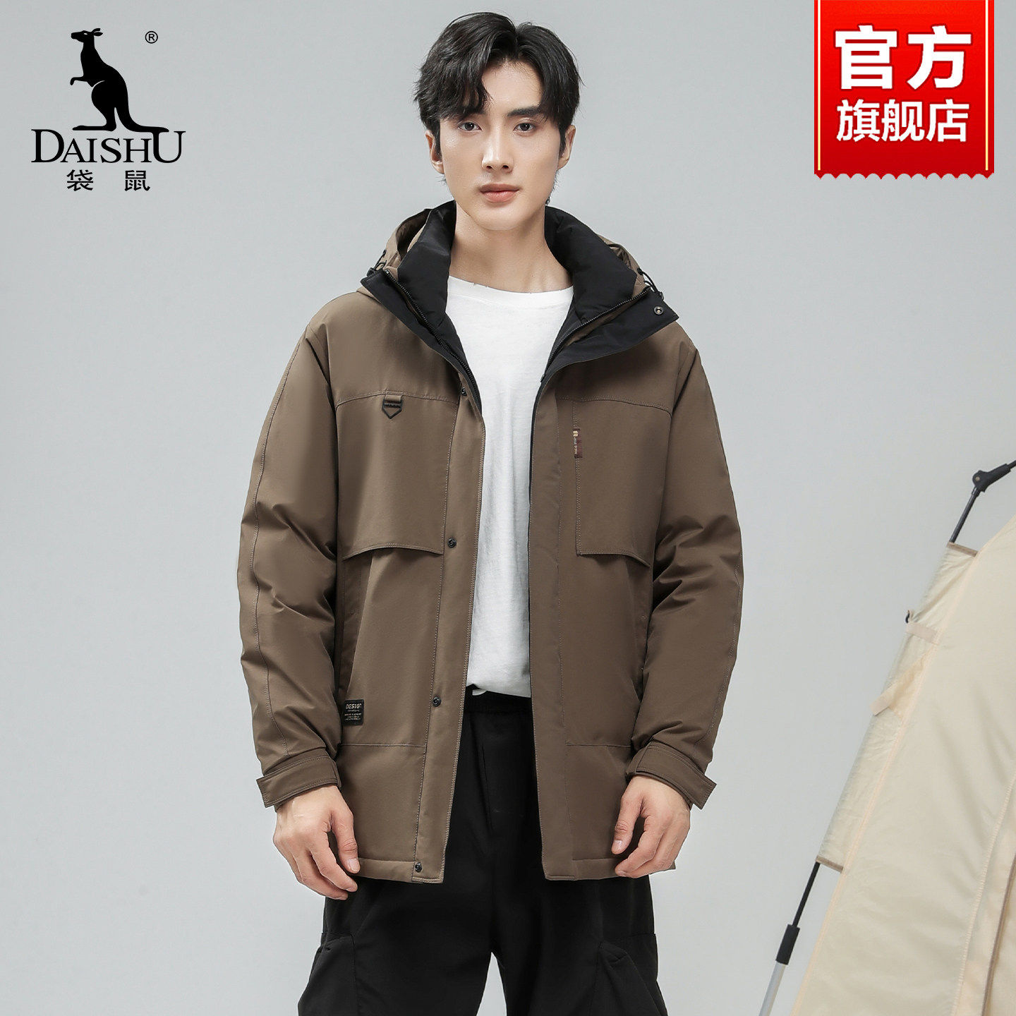 袋鼠中长款连帽羽绒服男款2025新款冬季保暖加厚冬装男士鸭绒外套