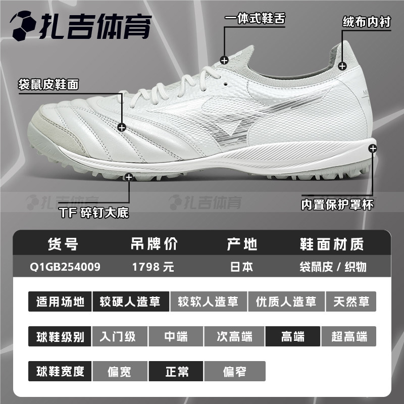 扎吉体育美津浓莫雷拉NEO SALA β TF日产袋鼠皮足球鞋Q1GB254009