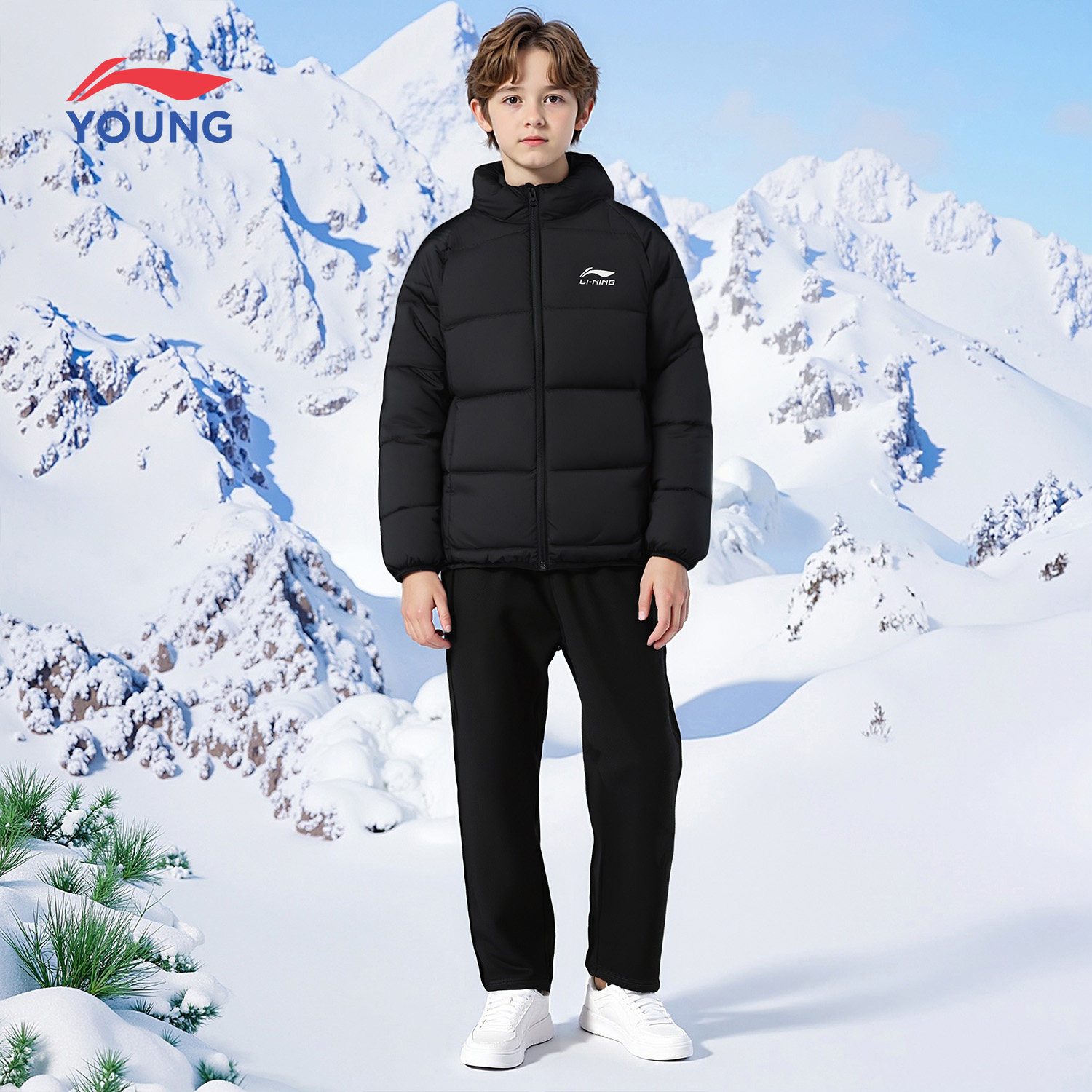 李宁儿童羽绒服男中大童2026冬季新款保暖青少年立领防风运动外套
