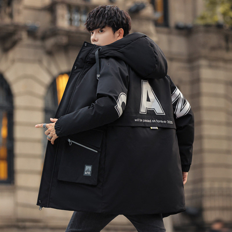 冬季青少年棉衣外套男孩中长款潮牌羽绒棉服初中学生大童加厚棉袄
