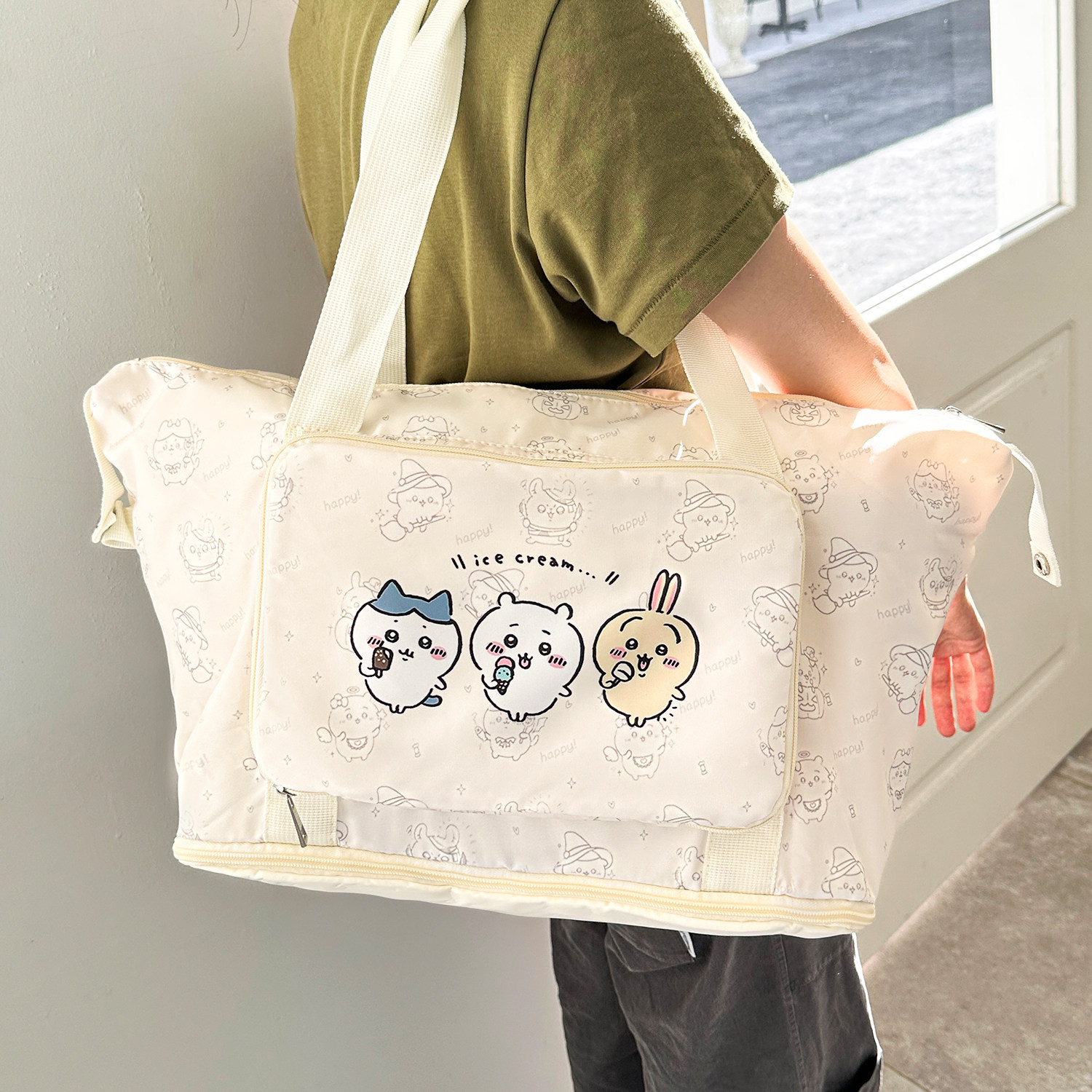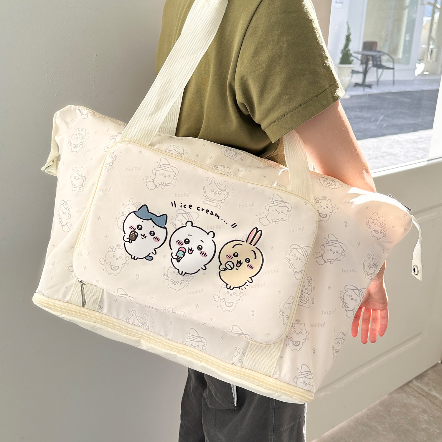 可折叠旅行收纳包大容量结实耐用健身出游待产行李袋卡通吉伊卡哇