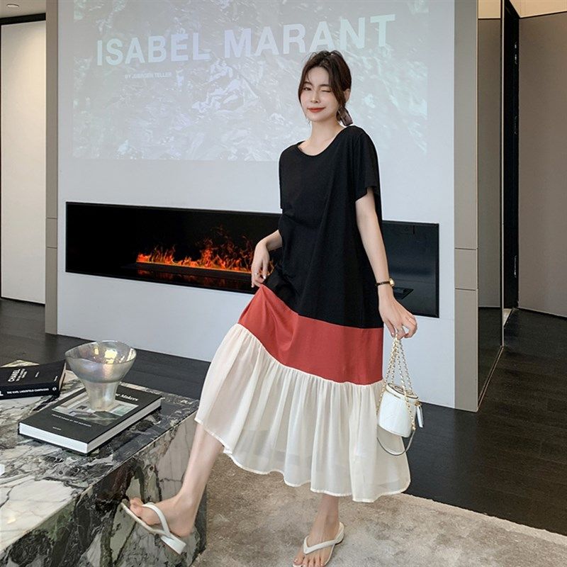 加大码胖mm连衣裙巨显瘦宽u松遮肚子裙子夏天短袖洋气2025年新款