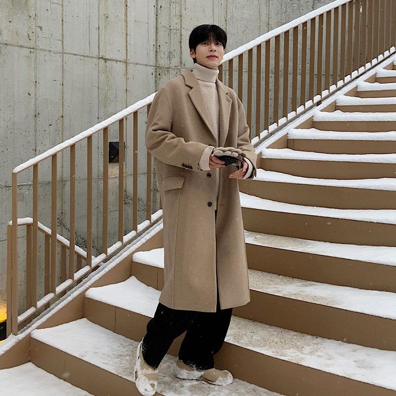 大衣男款冬季加厚中长款男生韩版风衣呢子外套韩系毛呢大衣男冬装