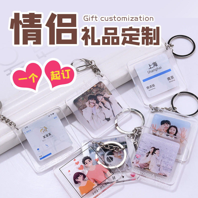 亚克力照片钥匙扣定制送七夕礼物diy书包情侣好物创意相片小挂件