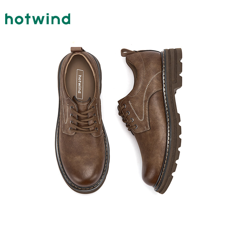 热风男鞋2026年春季新款休闲皮鞋男士时尚通勤复古增高工装鞋子