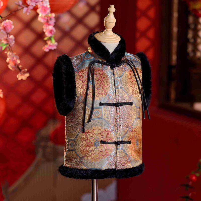 宝宝拜年服马甲男童女童背心中国风马夹加绒坎肩新年过年儿童唐装