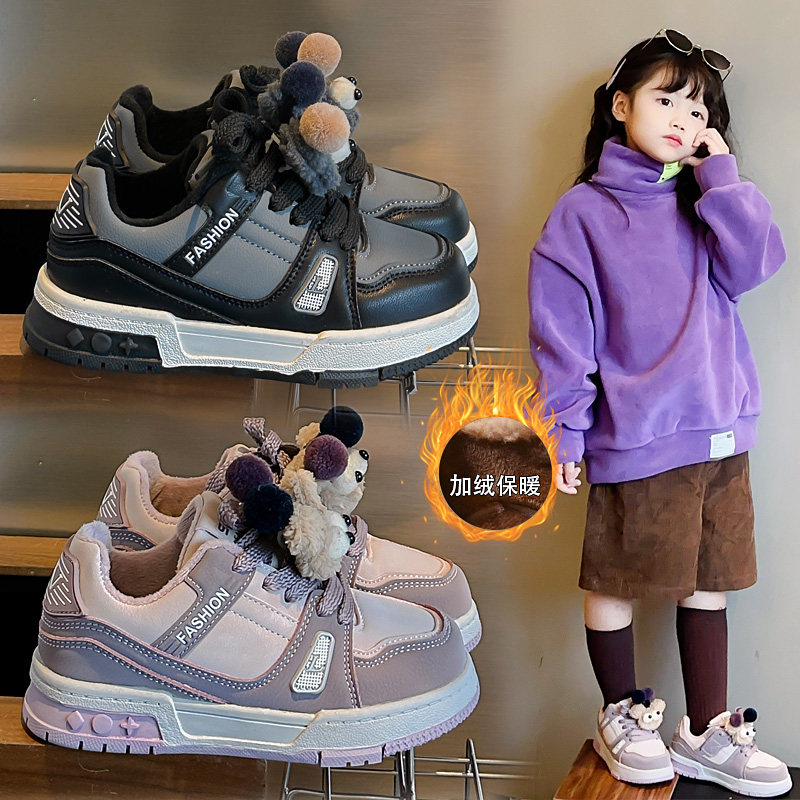 儿童鞋子秋冬女童二棉鞋加绒运动鞋男童鞋冬款薄绒女孩板鞋冬天潮