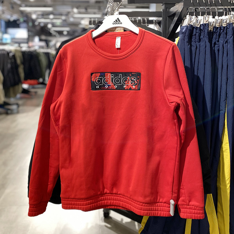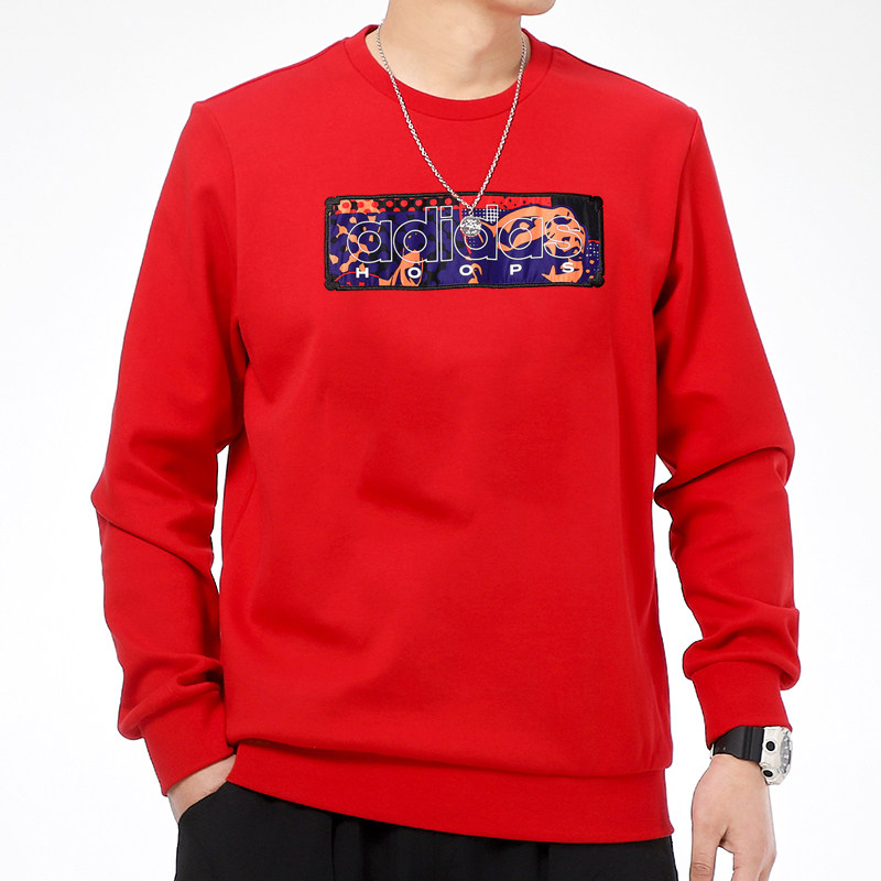 阿迪达斯红色卫衣男休闲运动服正品圆领紫色卫衣女套头衫HZ3025
