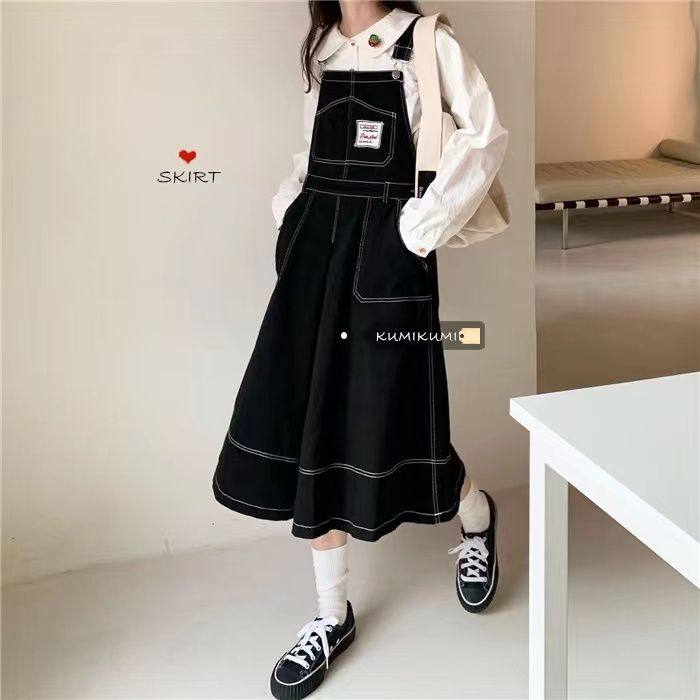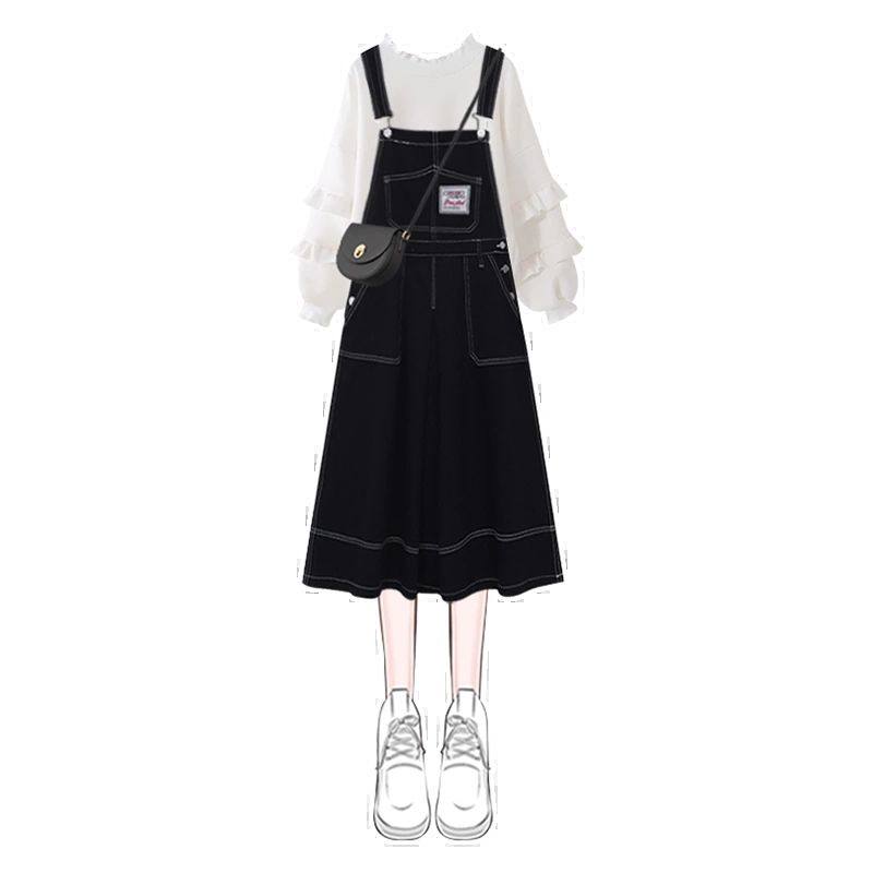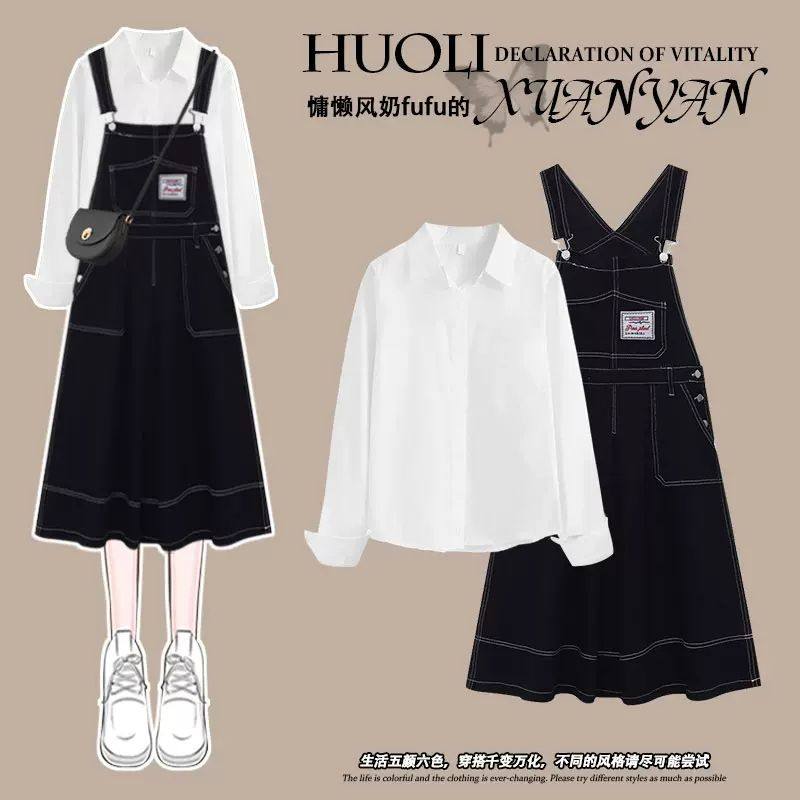 秋装女童2025年新款连衣裙套装12岁13中大童炸街网红牛仔背带裙子