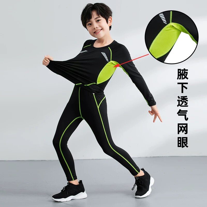 儿童篮球服套装男童秋冬紧身衣训练服足球服女童速干衣运动打底衫