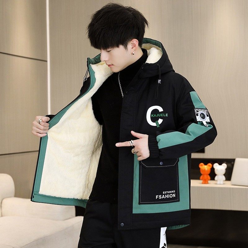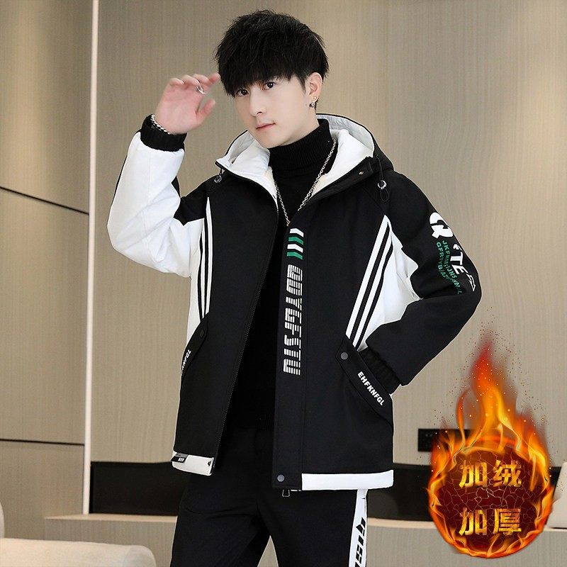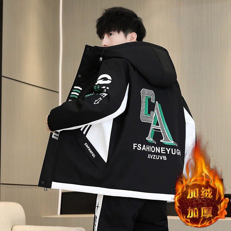 青少年加绒外套男大童秋冬季2025新款男孩加厚冬装高初中学生套装