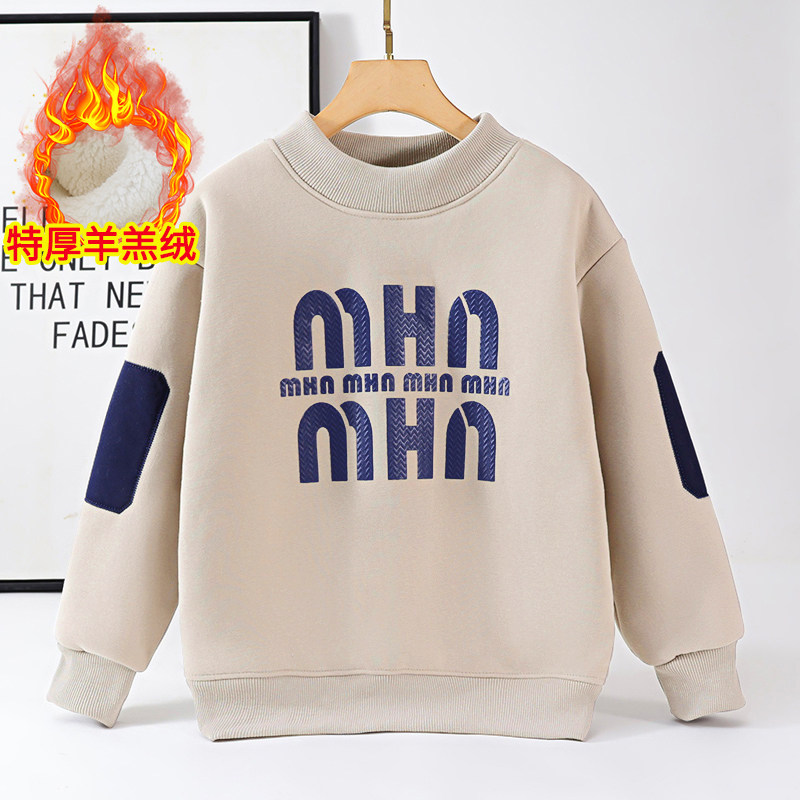 男童加绒卫衣冬季中大儿童加厚一体绒打底衫男孩潮款冬款保暖上衣