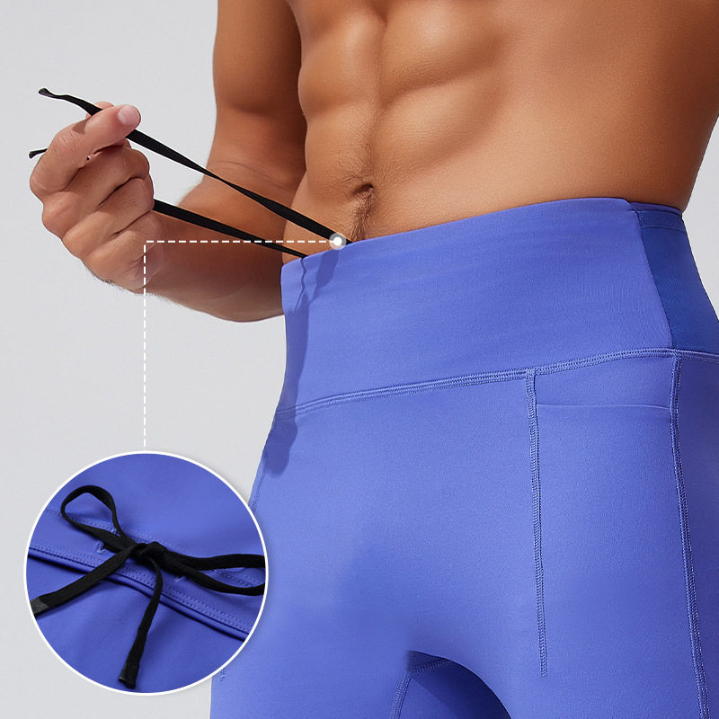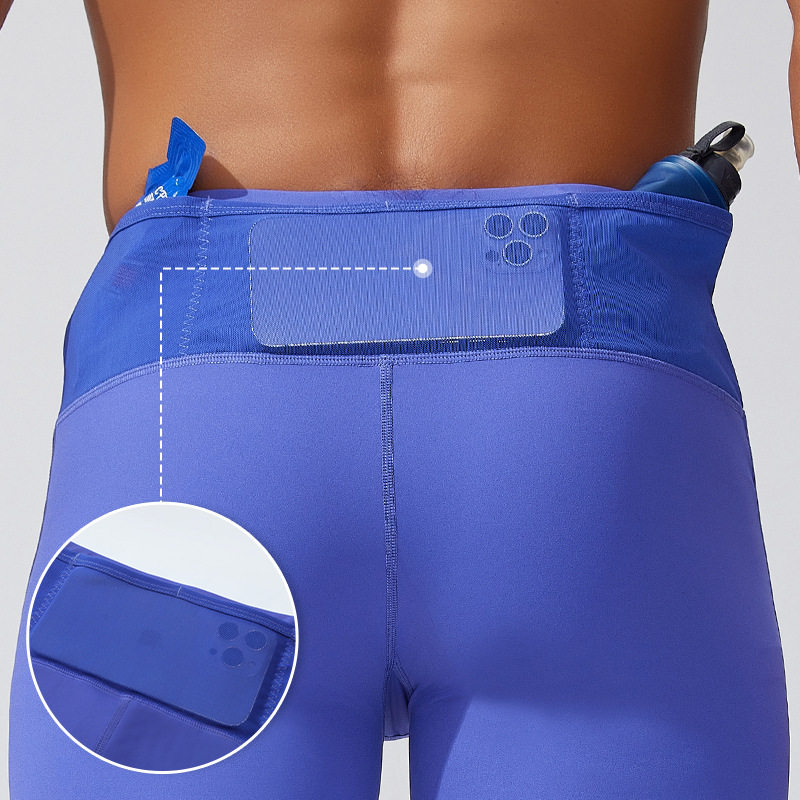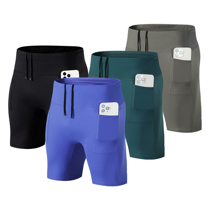 带腰包紧身运动短裤男士高弹速干健身压缩裤马拉松跑步运动五分裤