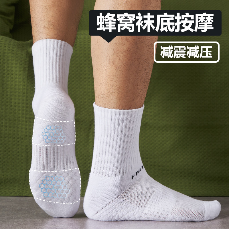 袜子男款夏季纯棉薄款透气男士毛巾底吸汗运动跑步羽毛球篮球长袜