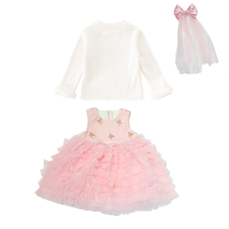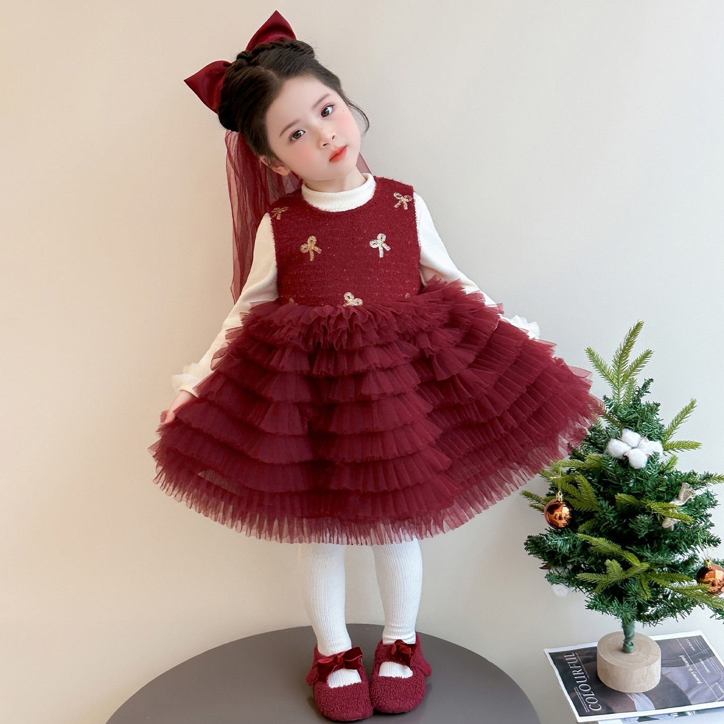 女童连衣裙春装2026新款洋气女宝宝周岁礼服公主裙儿童新年套装裙