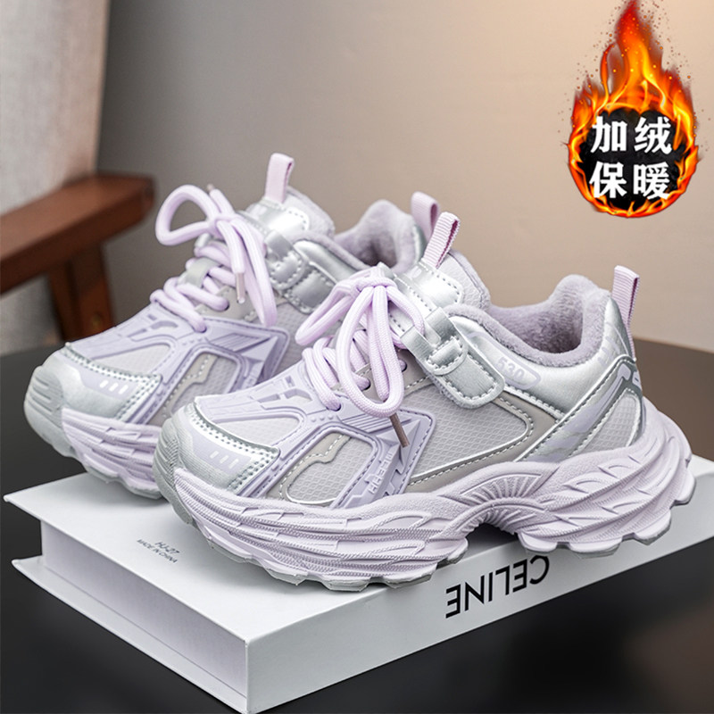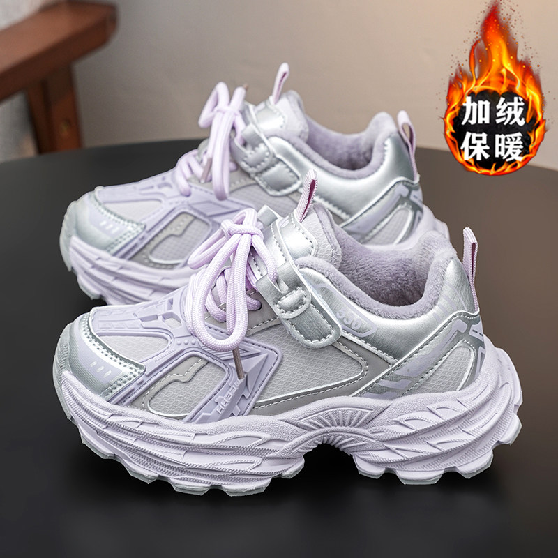 女童鞋棉鞋冬季2025新款儿童加绒加厚运动老爹鞋女孩软底防滑保暖